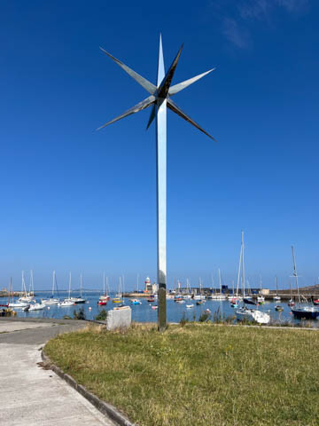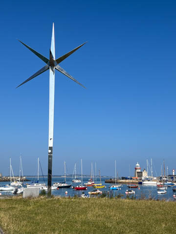 This is the "Realt Na Mára" or "Star of the Sea" monument which stands 12m in height. The sculpture is intended to reflect the heritage of Howth as a maritime community. The Star itself, reminiscent of compass points, alludes to themes of protection, light and direction leading fisherman and traveler alike home.