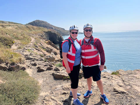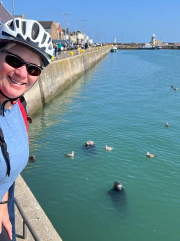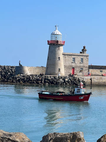 We headed back to the yacht club and met Howth Adventures for an ebike tour around the Howth peninsula. One of our first stops was the end of the quay across from the lighthouse.
