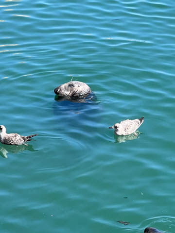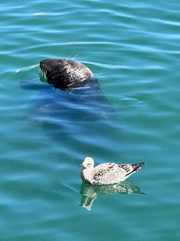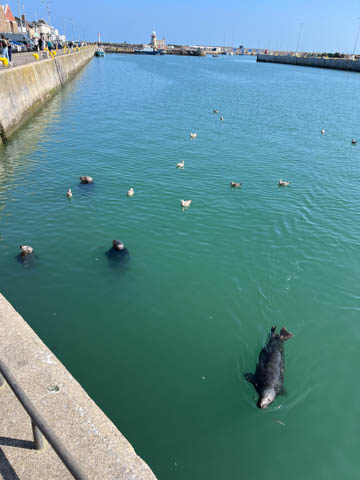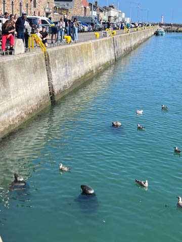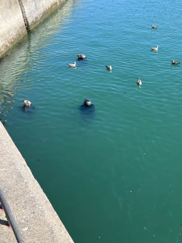 Coming back down the quay there was a small gathering out people who turned out to be watching (and feeding) a group of harbor seals.