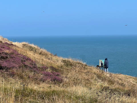 We continued around the peninsula in a counter-clockwise direction, arriving later at Baily Lighthouse. Unfortunately this was private property, so we had to stop at the gate. Still a stunning view, enough so that someone was on the bluffs nearby painting the scene.