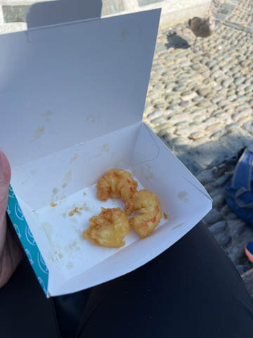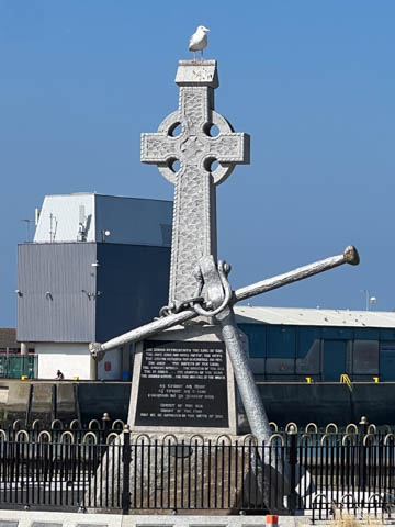 We stopped for ice cream at a small store, where our guide commented that the older man sitting across the patio was the founder of River Dance and one of the richest men in Ireland. After getting back to the harbor, we headed to a recommended restaurant for fish and chips, taking our bag over to a bench near the Howth Seafarers Memorial. OK, rookie mistake. Nancy was the first to open her box. Just as she did, a huge seagull literally flew into her lap, knocking the box to the ground and scattering chips everywhere. We managed to retrieve the shrimp and a couple chips as every seagull in the area descended noisily in front of us. Worse, as she brought her last shrimp up, a seagull hit her hand and head, taking it out of her hand.