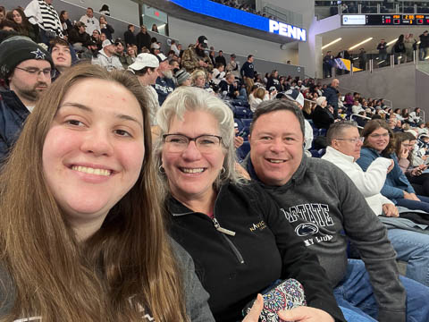 We also went up to Penn State to see Alexa. We went to watch PSU play Michigan in hockey. They gave up one goal in under 40-seconds and another in the first two-minutes of the game. They managed to come back and get within one by the third period, but then gave up an open-net goal after they pulled their goalie, losing 5-3. Oh well.