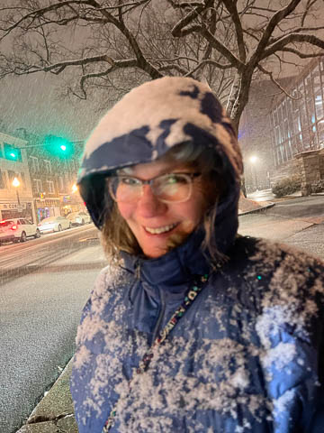Didn't realize it was snowing until we got back outside and had a decent walk back across campus to Alexa's apartment.