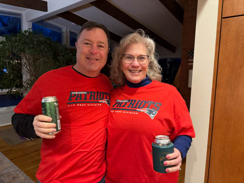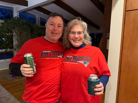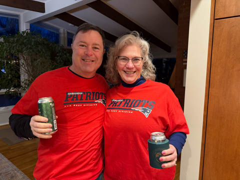 February 2026 (Part 02) Superbowl LX With the Patriots in the Superbowl against Seattle, Denny sent us Patriots shirts to wear to cheer them on. Not very effective as they lost 23 to 13.