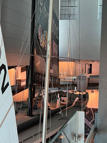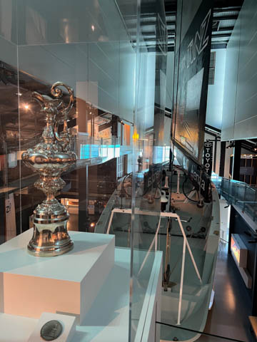 They had two of the Kiwi America's Cup yachts. The largest one was outside: KZ-1, a 120 ft monohull which famously lost to a catamaran from Dennis Conner's syndicate in San Diego in 1988. Inside was NZL-32 Black Magic, an 80 ft monohull which won the Cup 5-0 in 1995. There was also a copy of the Auld Mug trophy.