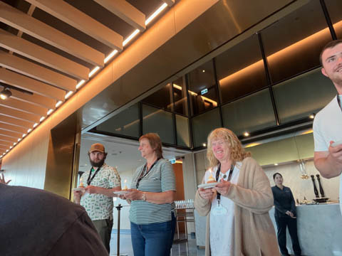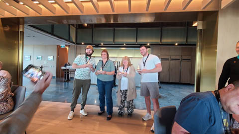 January 2025 (Part 03) New Zealand Trip - Day Two: Aukland Adventures By Disney - Day One: Kia Ora We started our second day with a trip to the gym followed by meeting our ABD guides in the hotel. A pleasure to meet Tiffany, who was our adventure guide hailing from Logan, Utah, and Nettie, a Maori cultural guide from Aukland. ABD assigns a theme to each day, and today's was Kia Ora. This is the traditional Maori greeting meaning to wish life, health, and vitality. Nancy took this picture with Tiffany to send to Gabby, a guide we've now had in Costa Rica and Ireland.