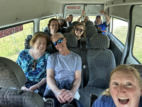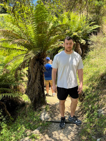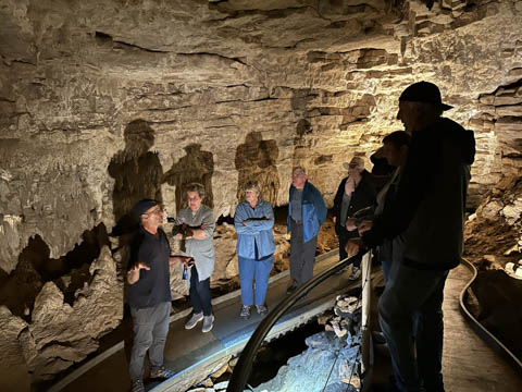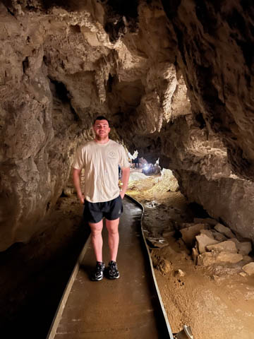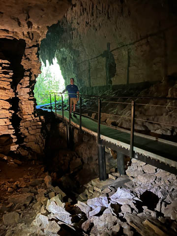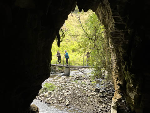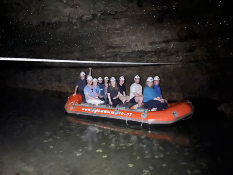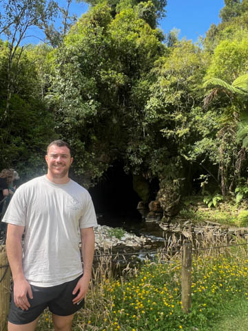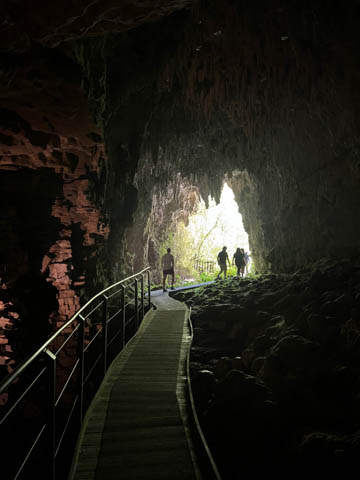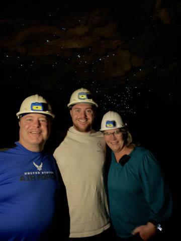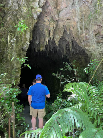 We were headed to a tour of a cave with Glow Worms. We loaded up into a smaller bus to get to the top of a nearby hill, then had a small walk down to the cave with our guide Mark.