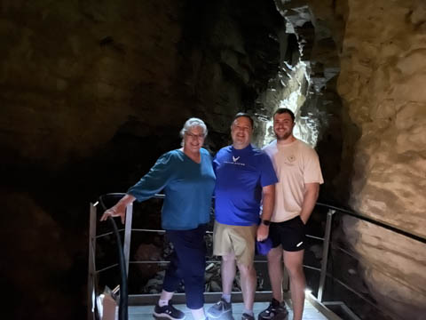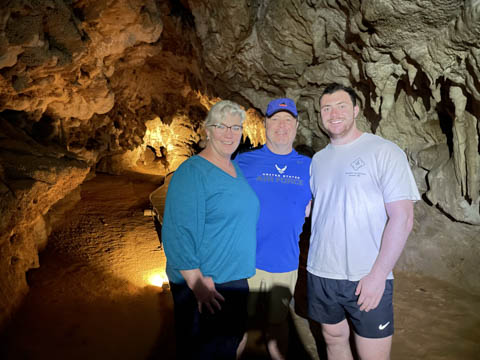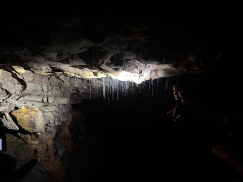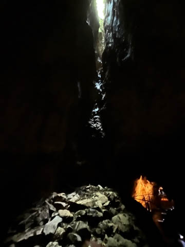 Mark helped set up a picture with Tiffany to show some of this a bit better by using a flashlight to illuminate our faces while leaving the cave behind us in darkness.