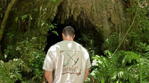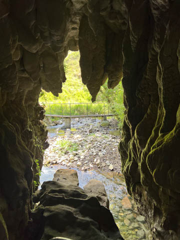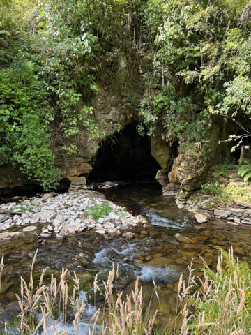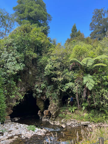 Glad to see there was another entrance hidden behind the tree on the right which allowed us to access the cave without wading through the stream. We were headed into Te Anna O Te Atua or the "Spirit Cave" which was well known to the Maori. Mark told us the story of how the Maori first led Dr Thompson into the cave on a quest to find bones of giant extinct birds.