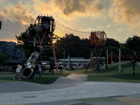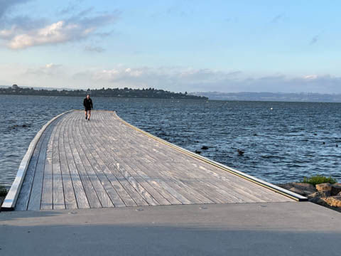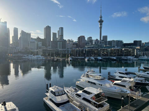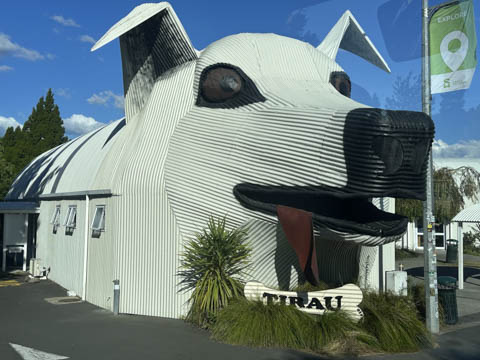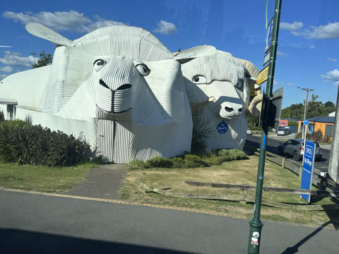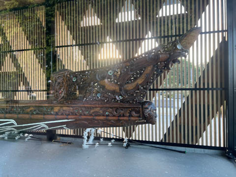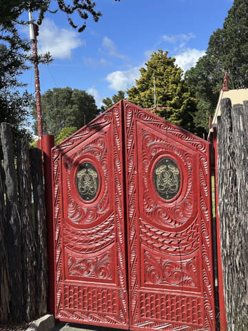 January 2025 (Part 05) New Zealand Trip - Day Four: Aukland to Waitomo to Rotorua Adventures By Disney - Day Three: On The Glow A beautiful day at the Aukland harbor. But, time to go. Passed an interesting Maori Marae, or community house, on the way and a couple other interesting buildings.