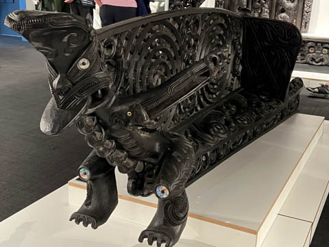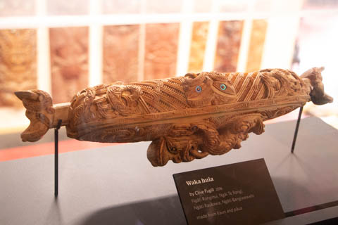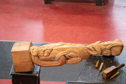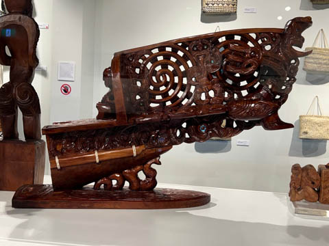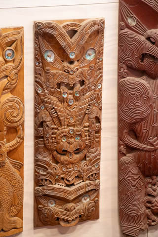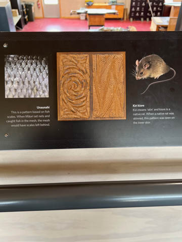 The Arts and Crafts Institute taught students in several Maori traditional arts, including carving and weaving, ensuring the crafts were kept alive. There were some stunning artworks in the small museum with both wood and stone carvings along with textiles. The institute is over 60-years old. There were several wonderful examples of Maori pounamu (greenstone) and bone carvings. Pounamu plays an important role in Maori culture and is a taonga (sacred treasure). It played an important role in trade across both islands. It was used for adze blades highly desired as weapons and to carve wood. The adze or smaller pieces of pounamu were also carved into hei tiki (stylized human figures worn as pendants) and other taonga. Pounamu taonga increase in mana (spiritual power or prestige) as they pass from one generation to another, as the pounamu is believed to absorb the mana of its past owners. Some heirloom pieces are named after a former owner in memory of their position and authority. The most prized taonga are those with known histories going back many generations. Pounamu refers to two types of green stone: nephrite jade known as kawakawa and translucent bowenite (a type of serpentine) known as tangiwai to the Maori.
