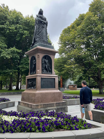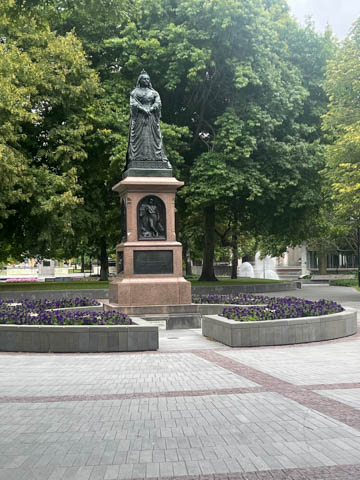 Here is the Mana Motuhake statue. This Maori phrase means self-determination, independence, sovereignty, authority. The sculpture represents a waka, or Maori canoe, and took around 2500 hours to create, using a blend of modern and traditional techniques. The waka provides a direct reference to Victoria Square once being a canoe landing site for the purpose of trading food and a Maori gathering place. The six figures inside the waka pay tribute to Te Tiriti o Waitangi (The Treaty of Waitangi) signatories for Ngāi Tahu. “The carved forms reflect the moko worn by signatories of the Treaty. This artwork portrays the mana of the signatories and supports the Treaty relationship between Ngāi Tūāhuriri/ Ngāi Tahu and the Crown."