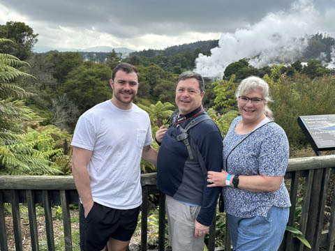 I think this is the only picture of our bus driver in this area, Orm. He was ex-Navy and gave Steve a New Zealand Navy hat when we said goodbye at the airport. Once Steve showed it to Nancy, she gave him her Air Force bandana which he ran back to give to Orm.
