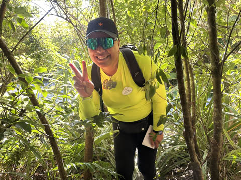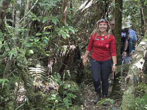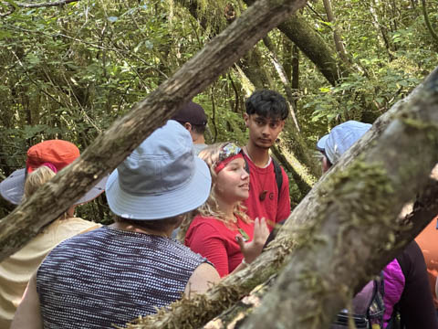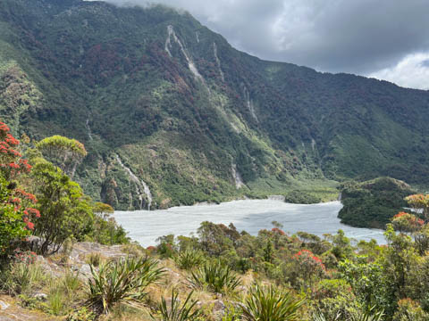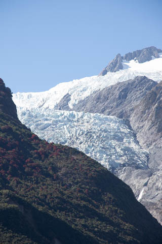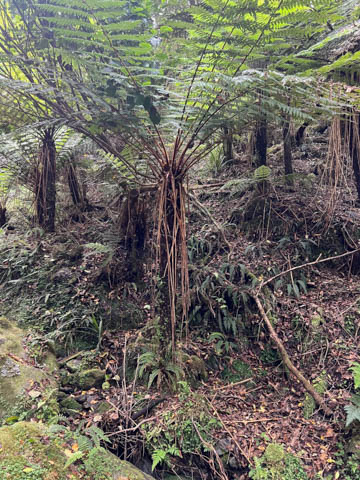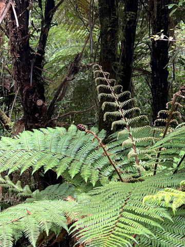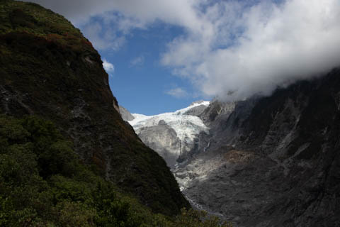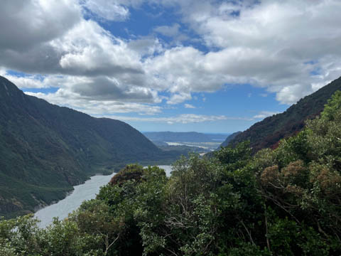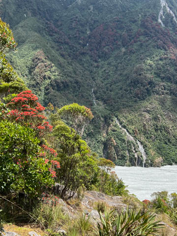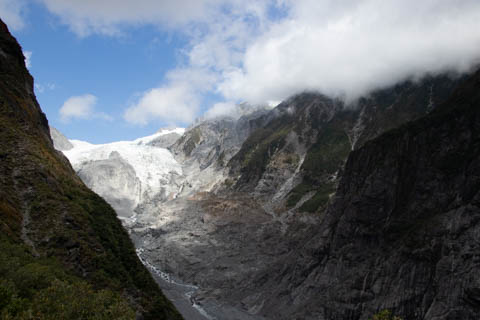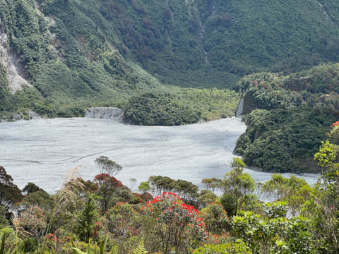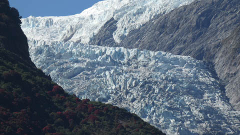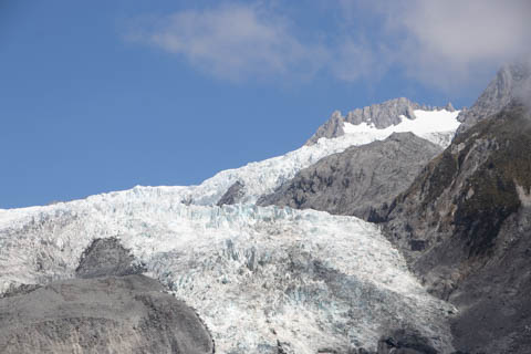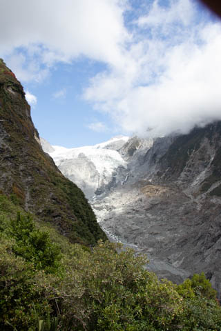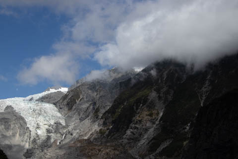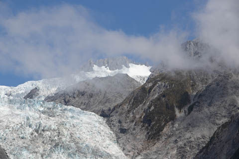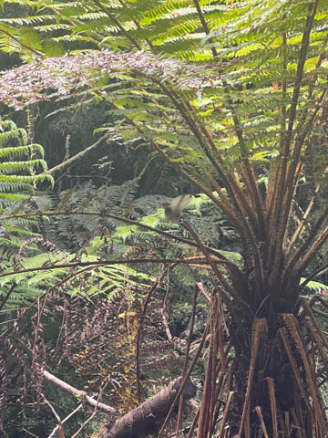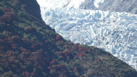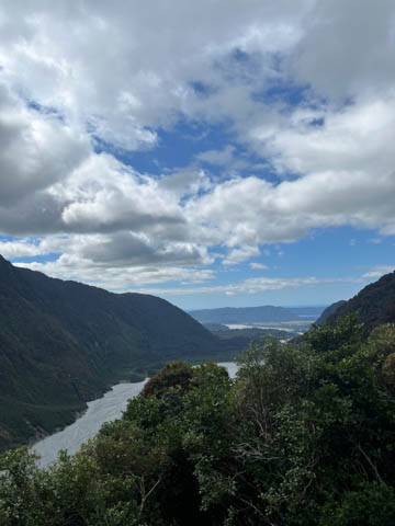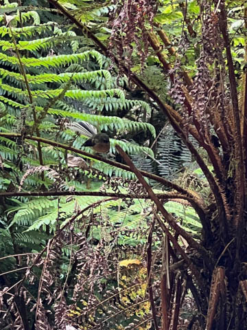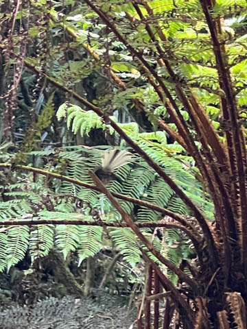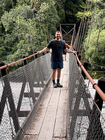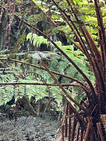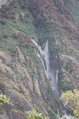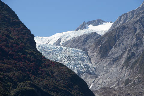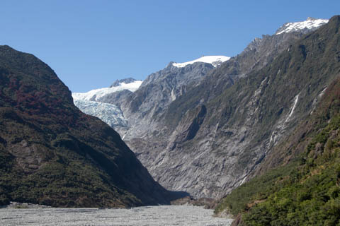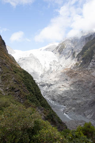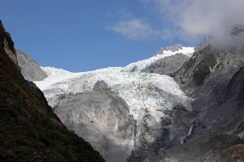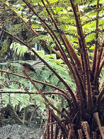 January 2025 (Part 10) New Zealand Trip - Day Nine: Franz Josef Adventures By Disney - Day Eight: Franz and Family As a group, we headed up into Westland Tai Poutini National Park. There we met a guide for a short (and thankfully mostly flat) walk along the Waiho River to an overlook site viewing the Franz Josef Glacier high on the mountainside. Our guide took us off the main trail on a path marked for guides only where she talked about the geology and plants of the rainforest in a valley under the glacier not too long ago.