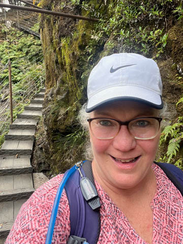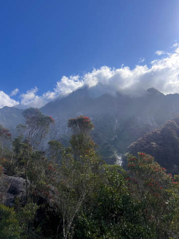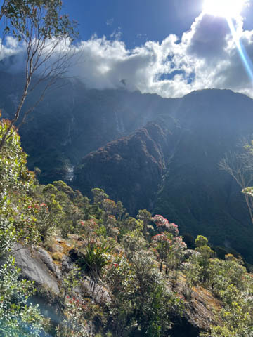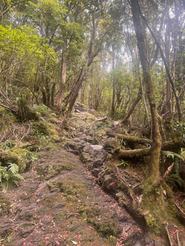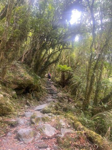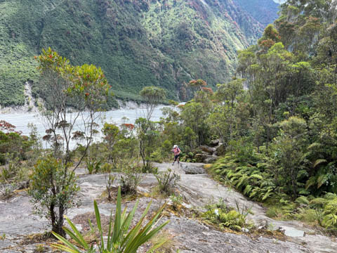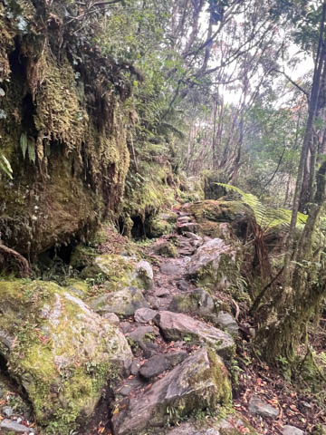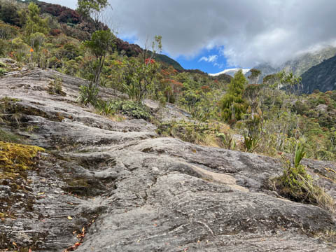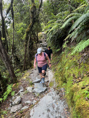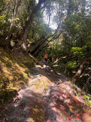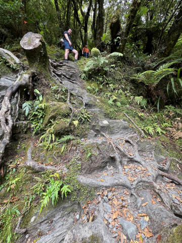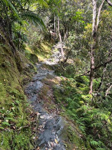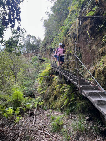 The trail continued to get steeper with the path leading over rock faces and requiring us to step from rock to rock in most areas. Large steps up each time, and more worrying about what they'd be like going down.
