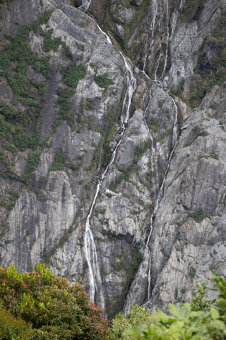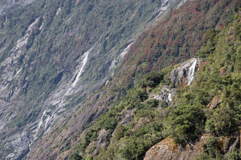 Some small waterfalls along the southern side fed by the snow (and apparently a small lake) high above.