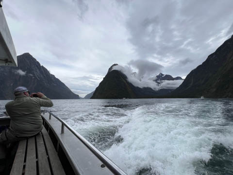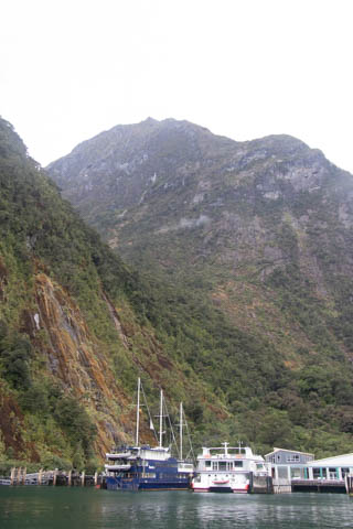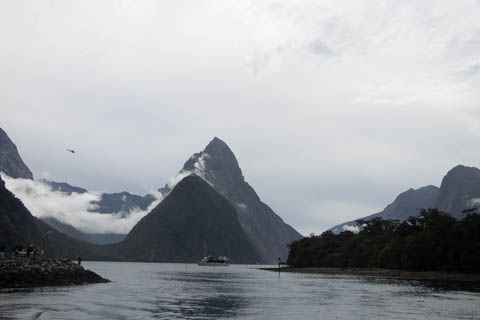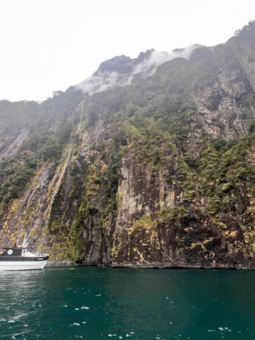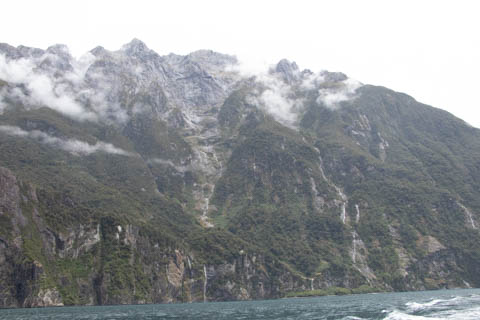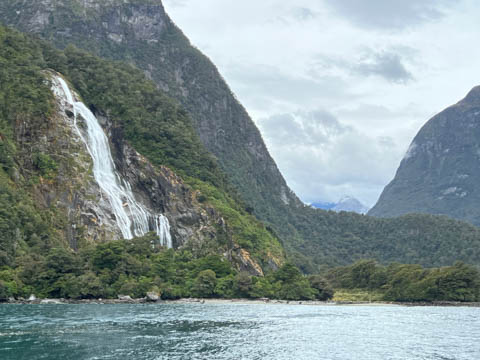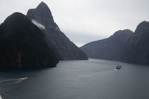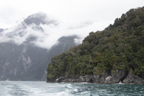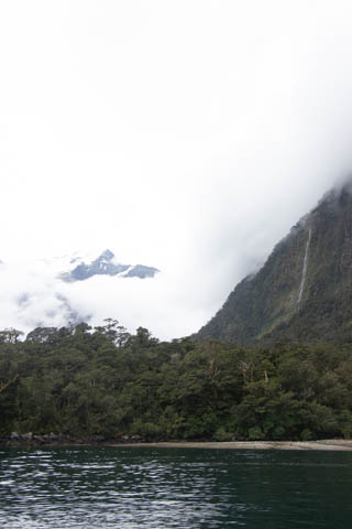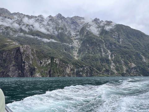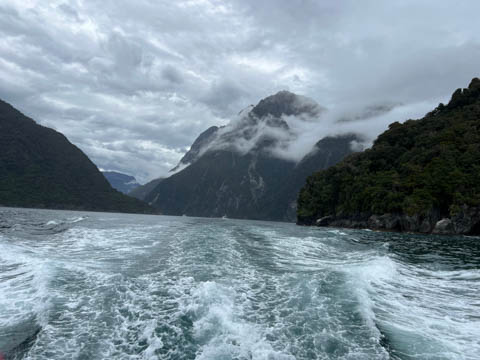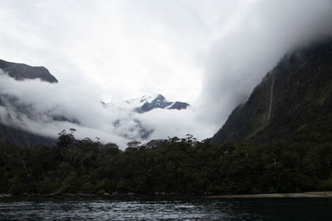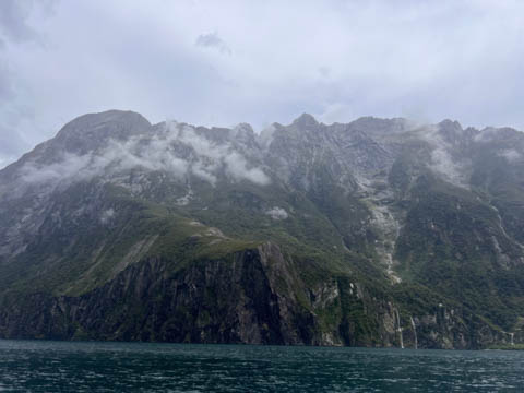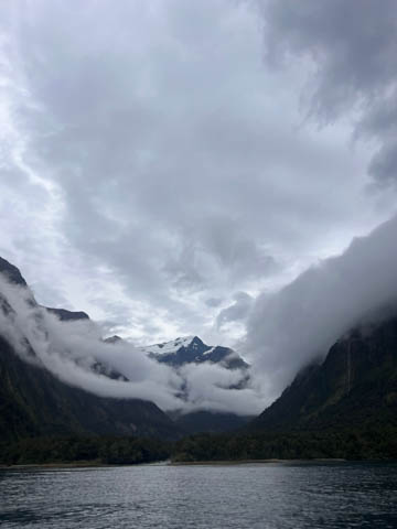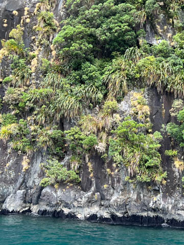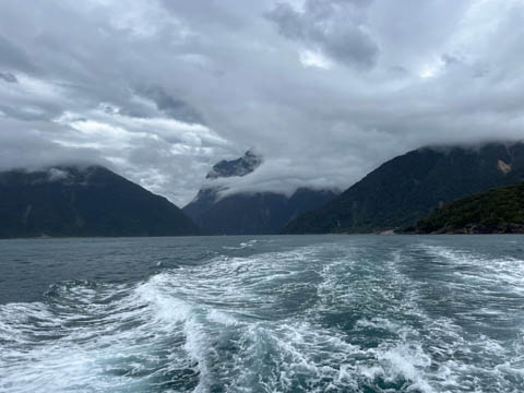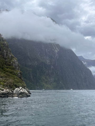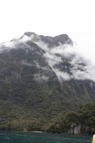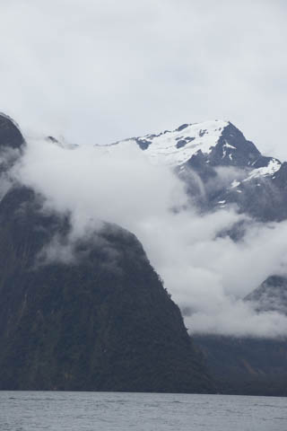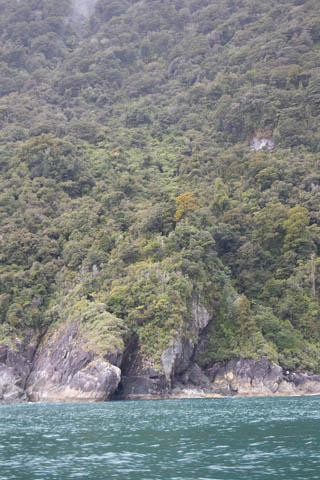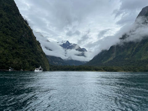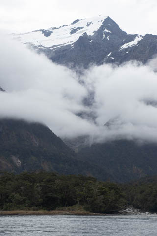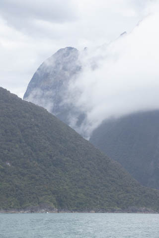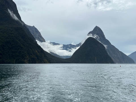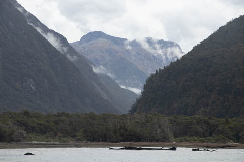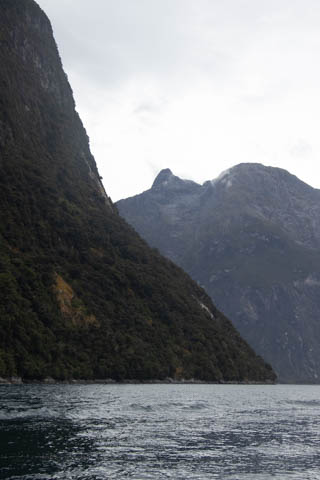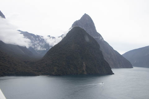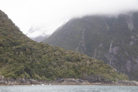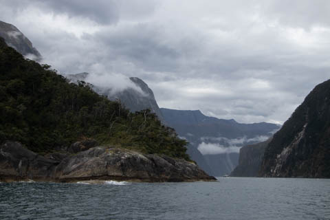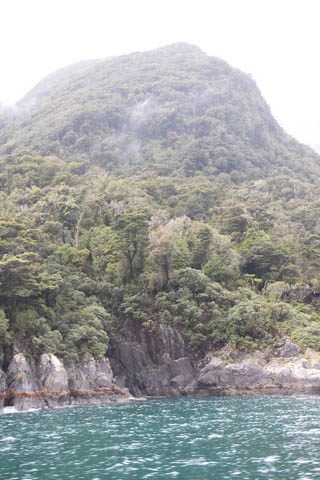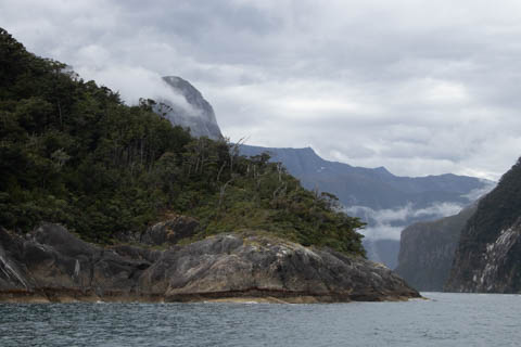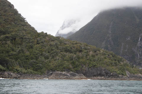 We also went into Harrison Cove after Stirling Falls. Named after the inventor of the chronometer and winner of the Longitude Prize. This small cover is now the home of the Milford Sound Discovery Centre, a research facility. The natural anchorage was used by whalers and sealers in the early 1800s. It had a great view toward Mount Pembroke.