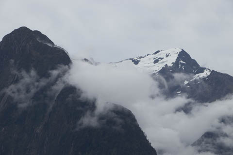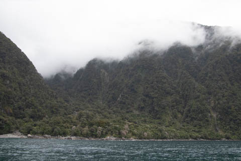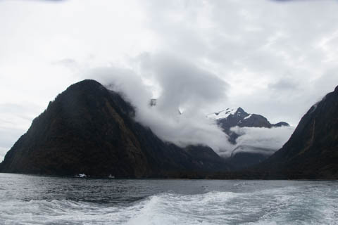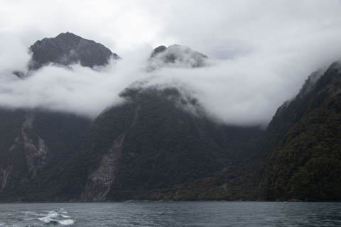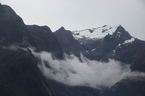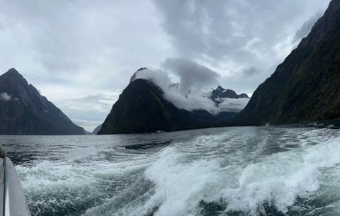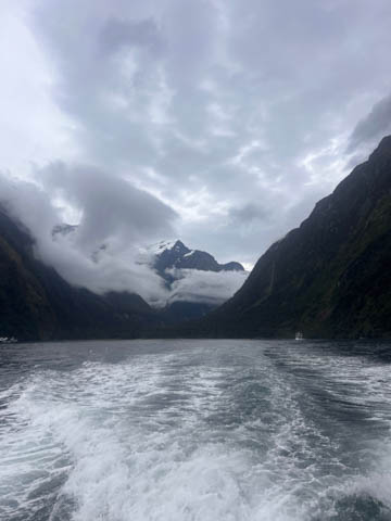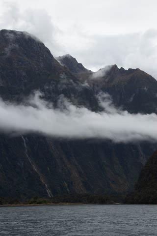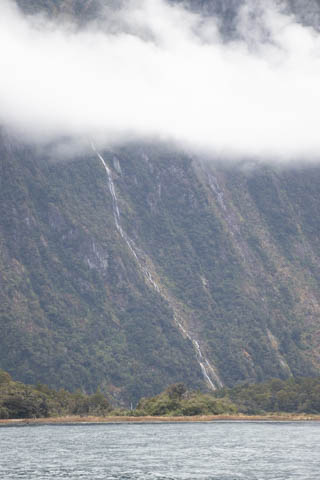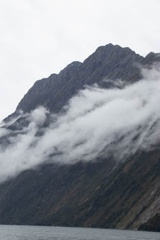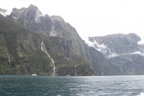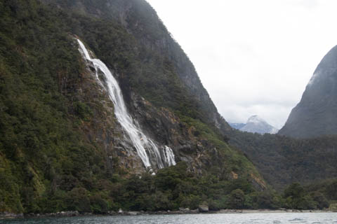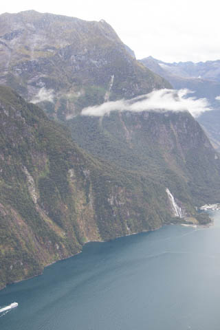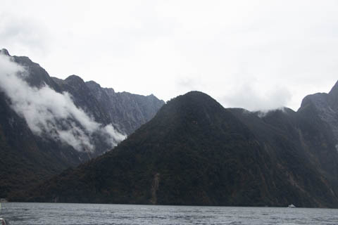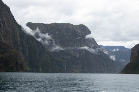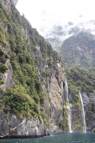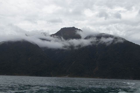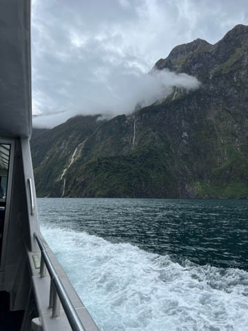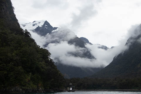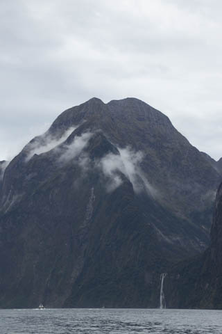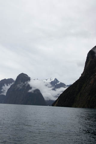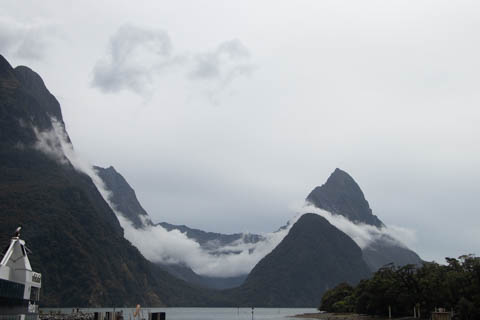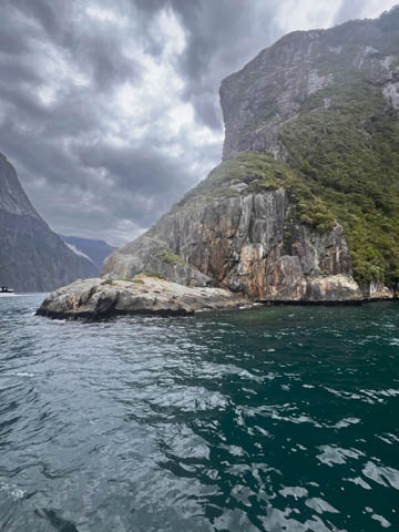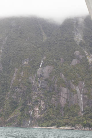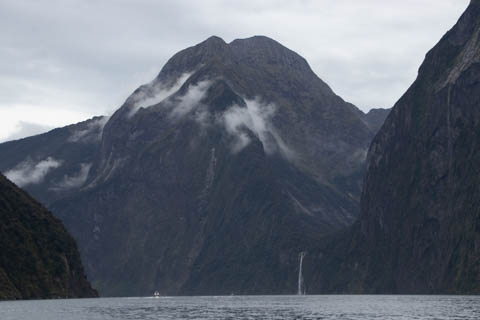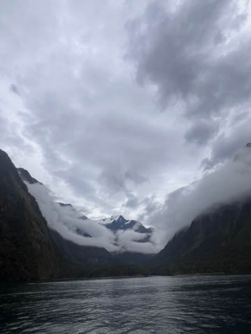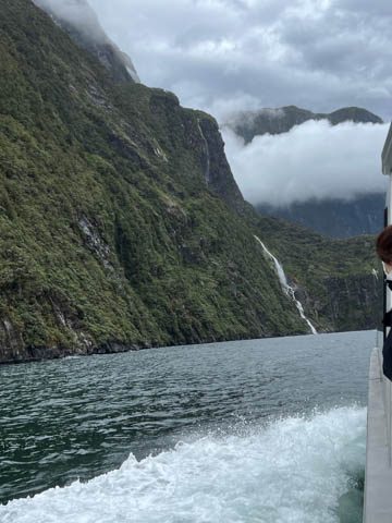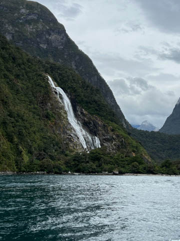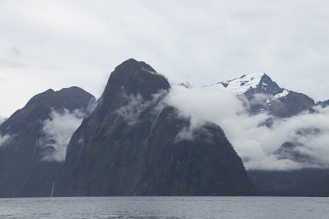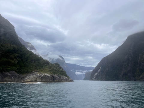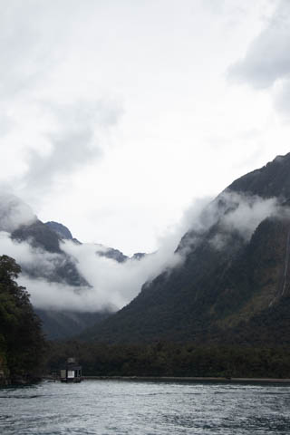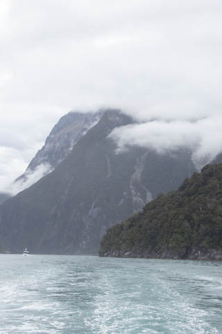 We also went into Harrison Cove after Stirling Falls. Named after the inventor of the chronometer and winner of the Longitude Prize. This small cover is now the home of the Milford Sound Discovery Centre, a research facility. The natural anchorage was used by whalers and sealers in the early 1800s. It had a great view toward Mount Pembroke.