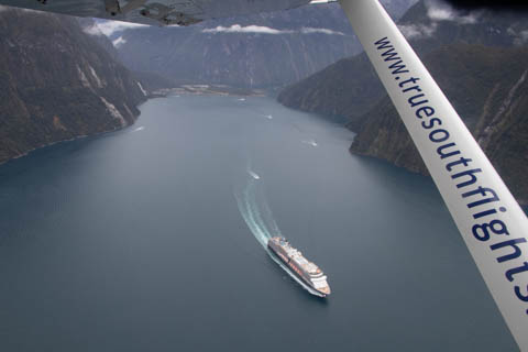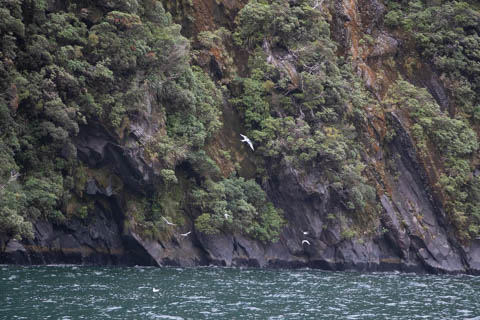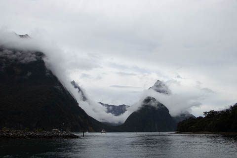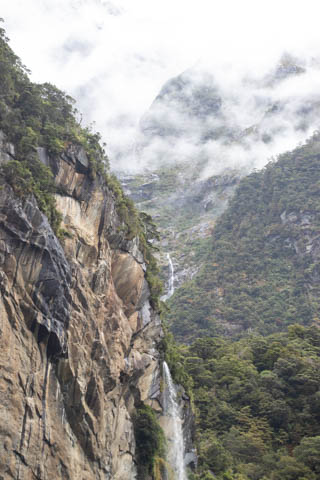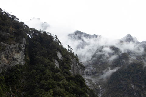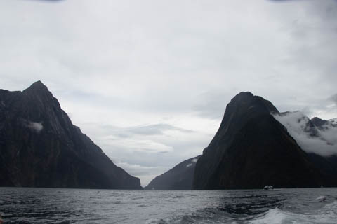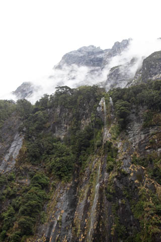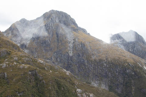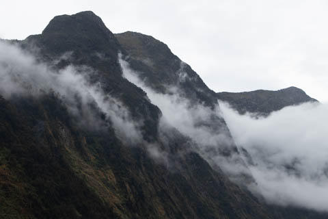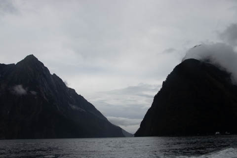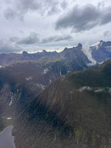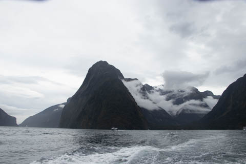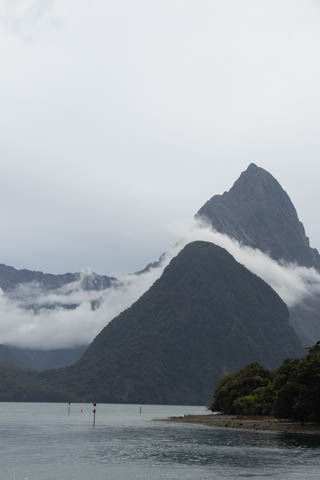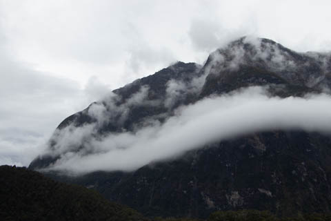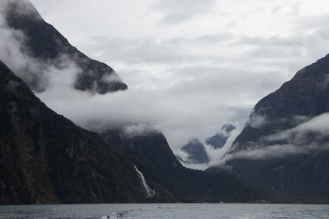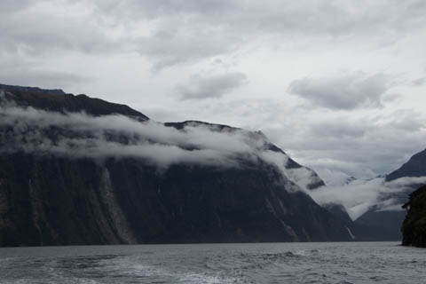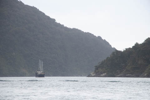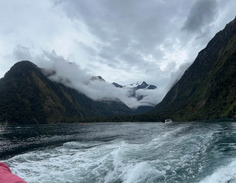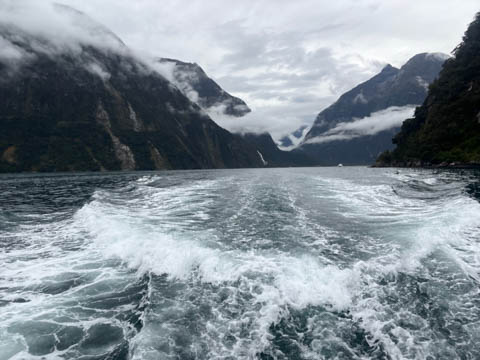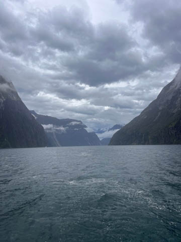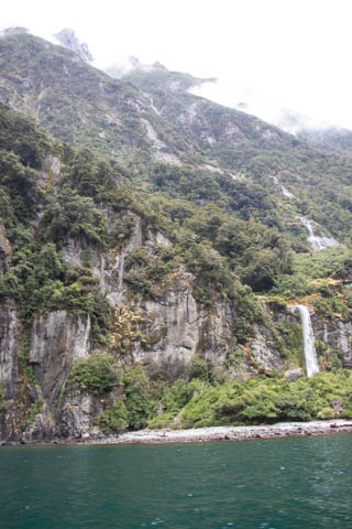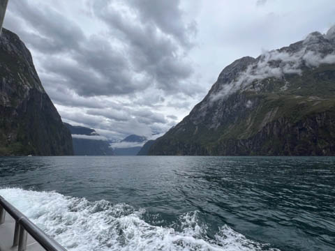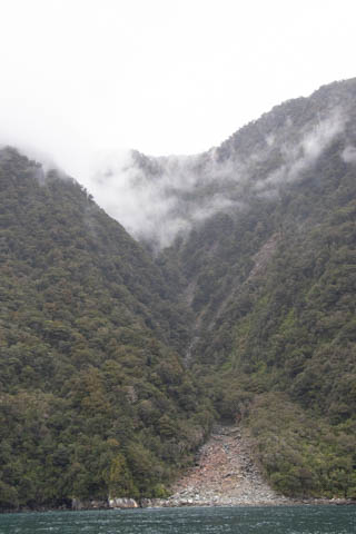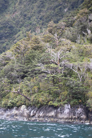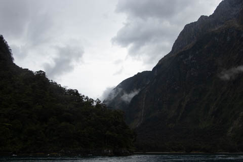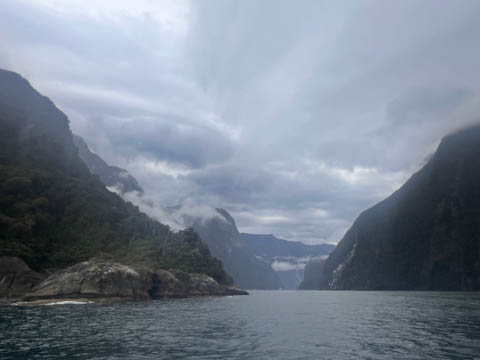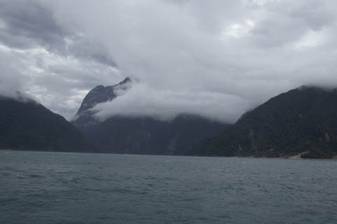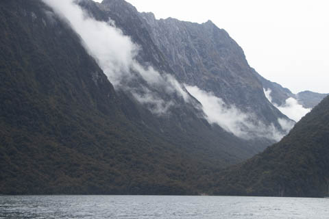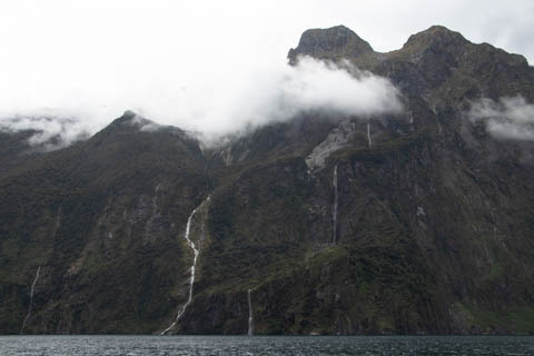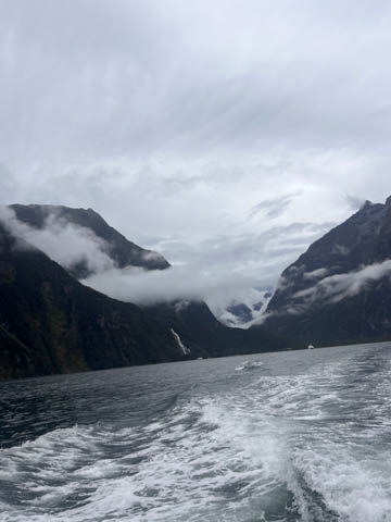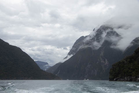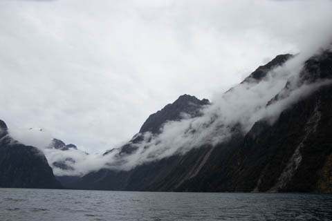 We also went into Harrison Cove after Stirling Falls. Named after the inventor of the chronometer and winner of the Longitude Prize. This small cover is now the home of the Milford Sound Discovery Centre, a research facility. The natural anchorage was used by whalers and sealers in the early 1800s. It had a great view toward Mount Pembroke.