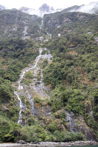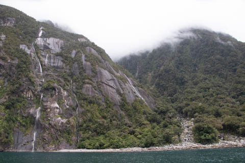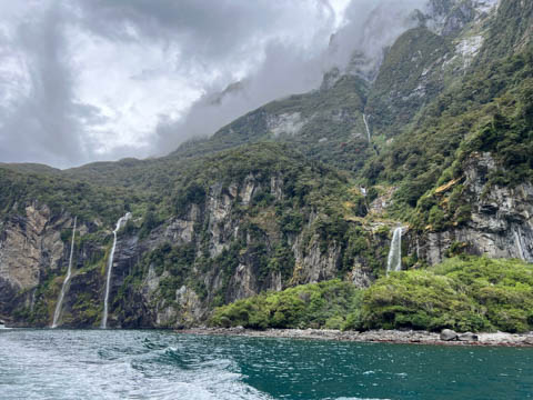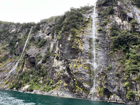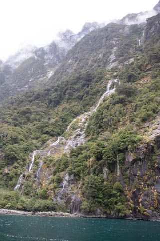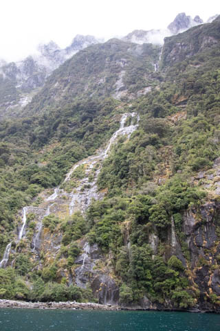 As we headed out we made our way to the left/south side of the fjord, and would return along the other, north, side. Waterfalls and more waterfalls everywhere