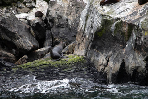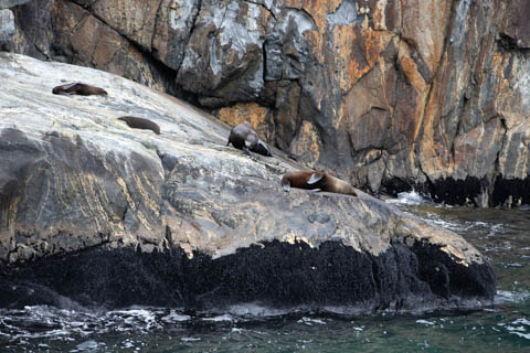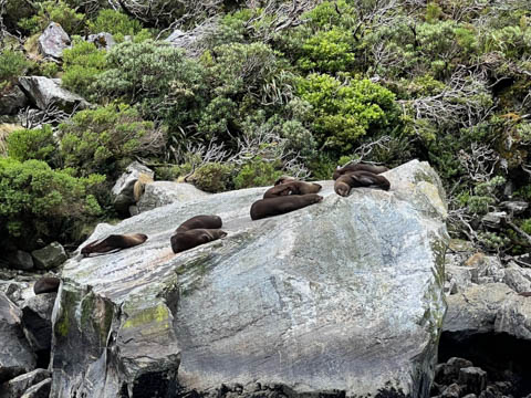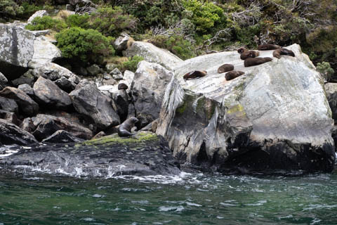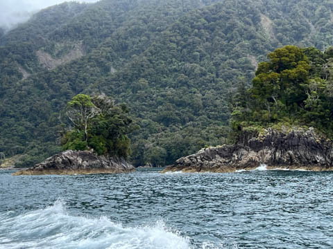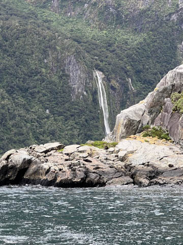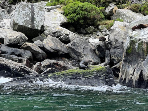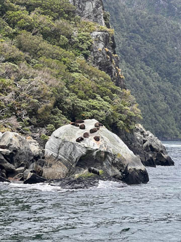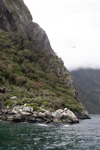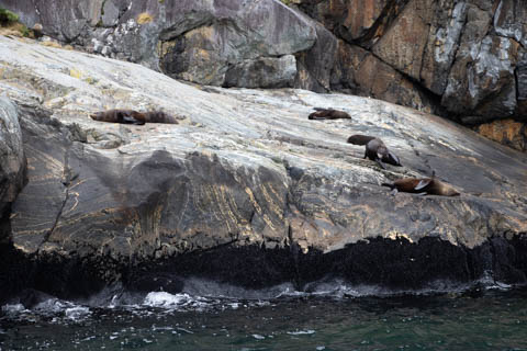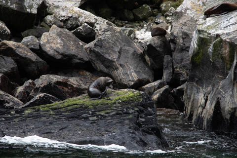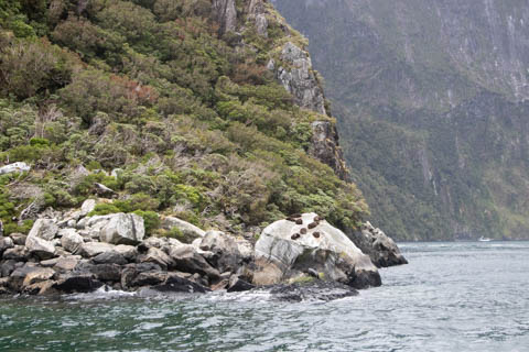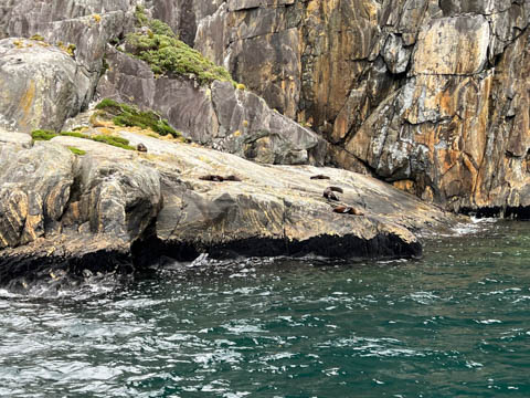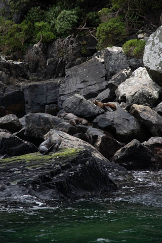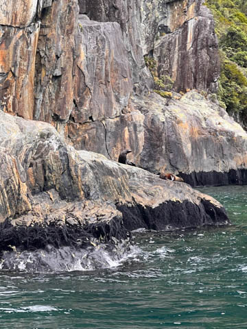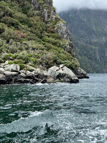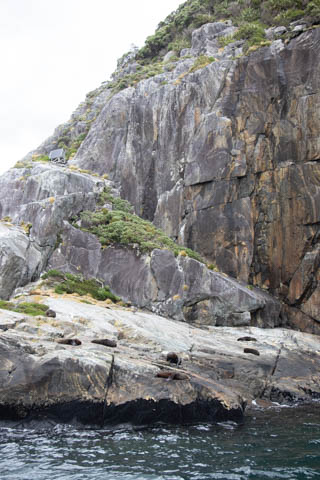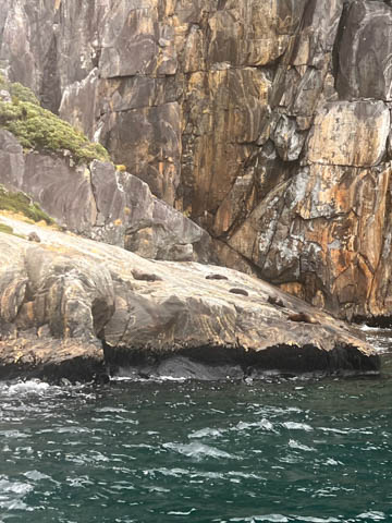 We eventually made our way out of the fjord and into the Pacific Ocean (or Tasmanian Sea depending on where you look). As we exited, there were seals on the rocks along the northern shore.