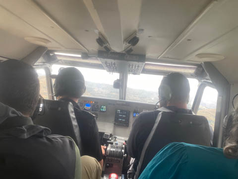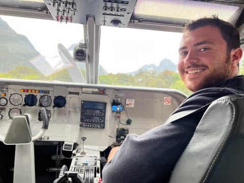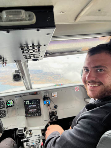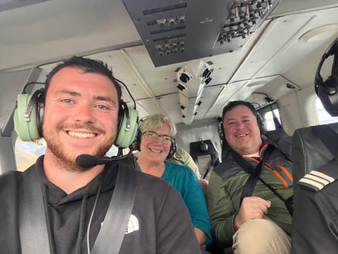 Andy got to sit up front next to Hamish the pilot. Big grin for that.