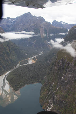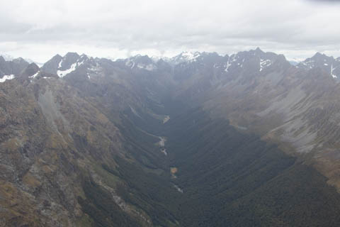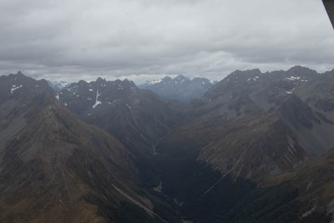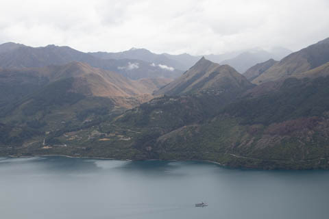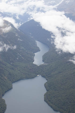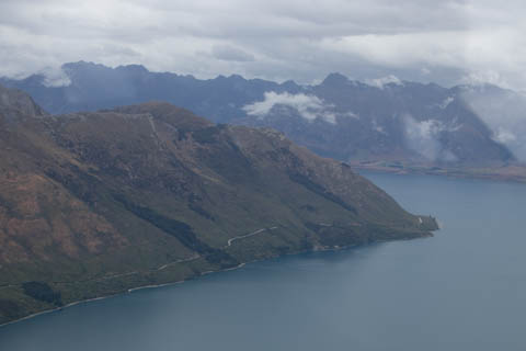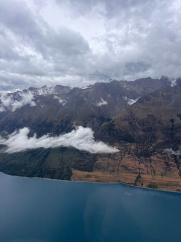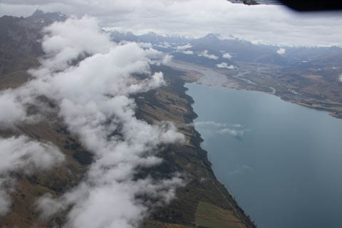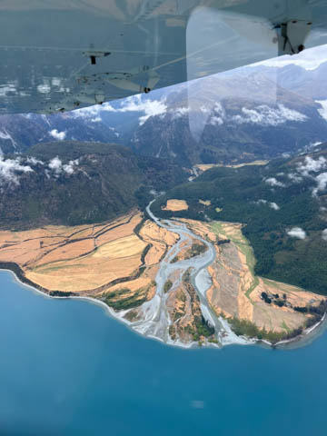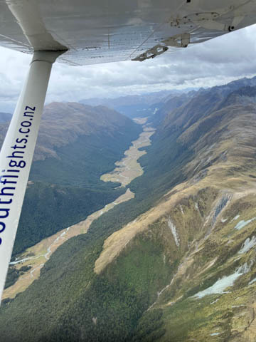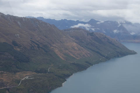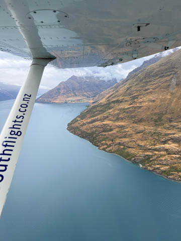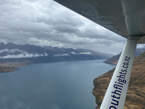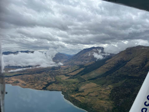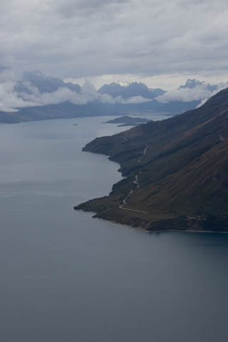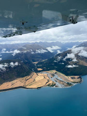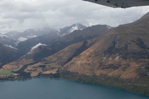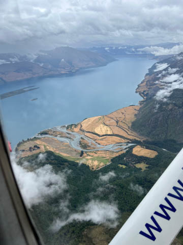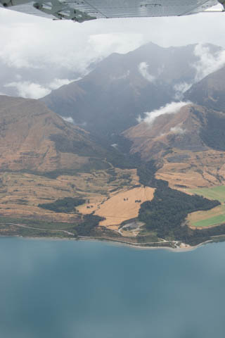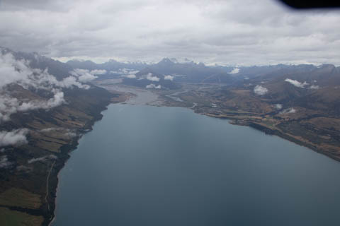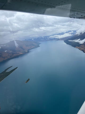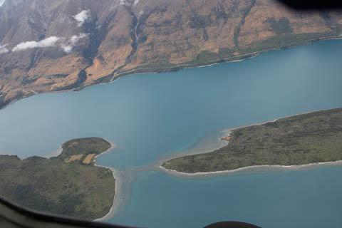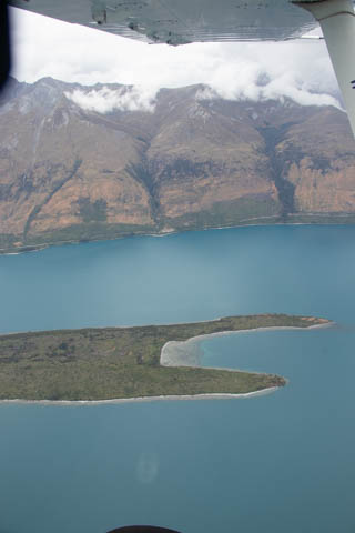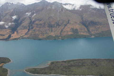 We eventually intersecting Lake Wakatipu and flew over Pigeon and Pig Islands. This gave us a great view looking back up the Dart River.