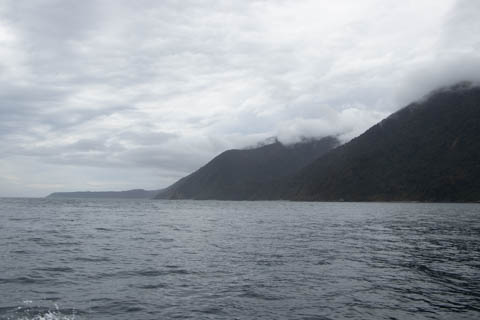 It was pretty clear once we got only a bit offshore why the sound wasn't discovered until very late, as there is no clear way to see any passage leading inland unless you came very close to shore along the northern arm which juts out into the sea.