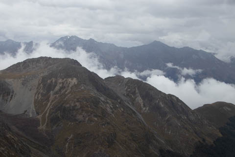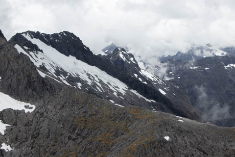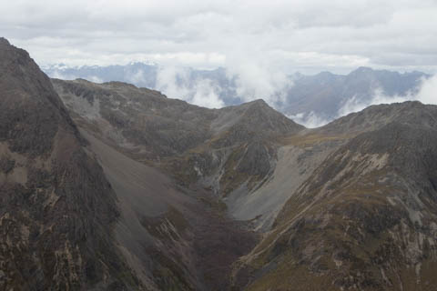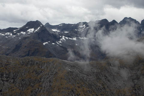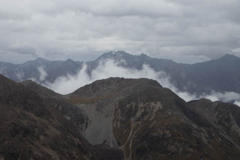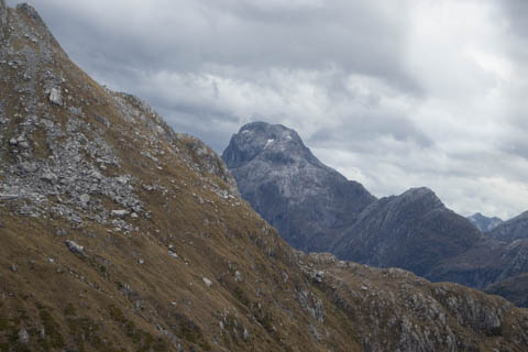 Here is Don Lomond on the left as we approach Queenstown, which Andy hiked to the day before. The saddle where we ate lunch and where Steve and David turned around is visible between the two peaks.