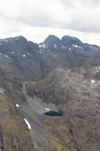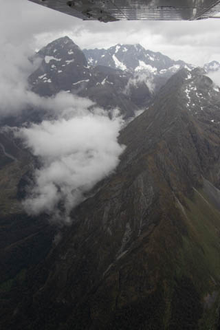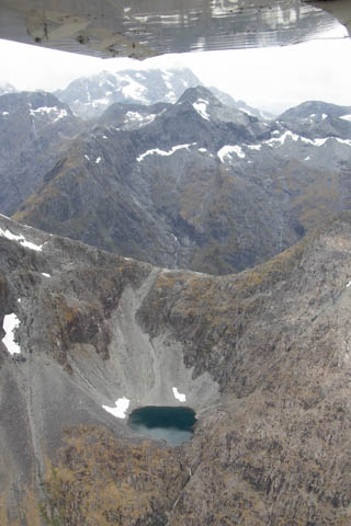 Another hidden mountain lake up high. Out pilot said some pilots actually used to land on this when it was frozen, well at least they did before there was an undefined accident. I think the peak rising beyond the lake is Mount Christina ... maybe.