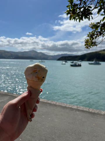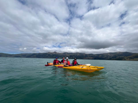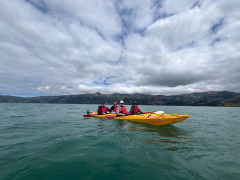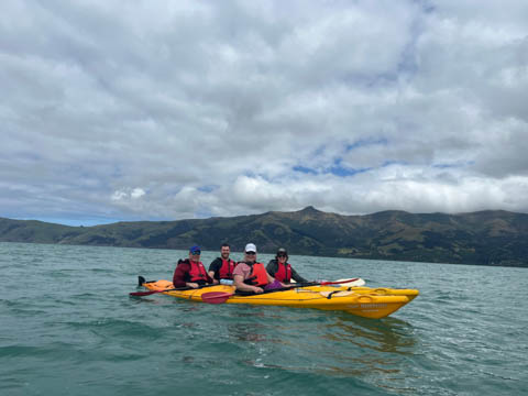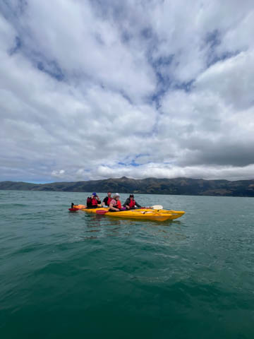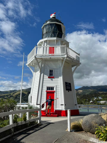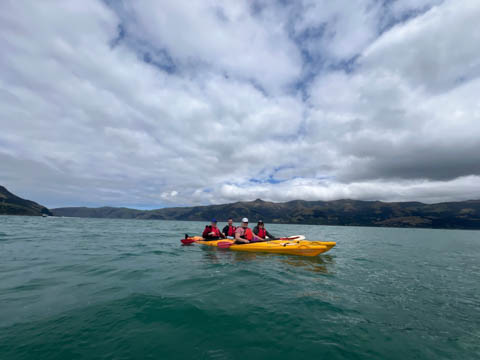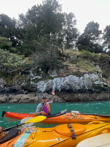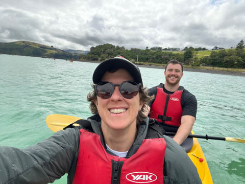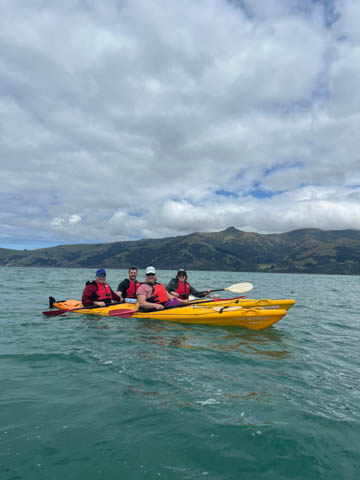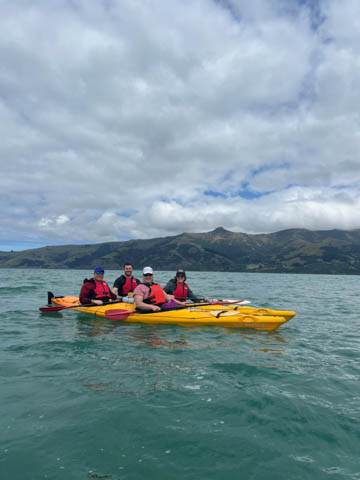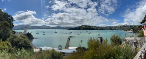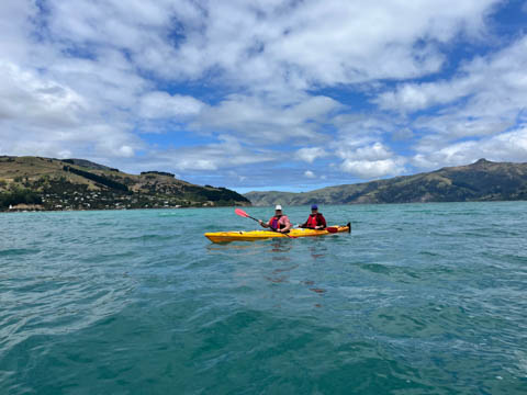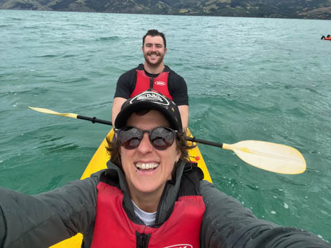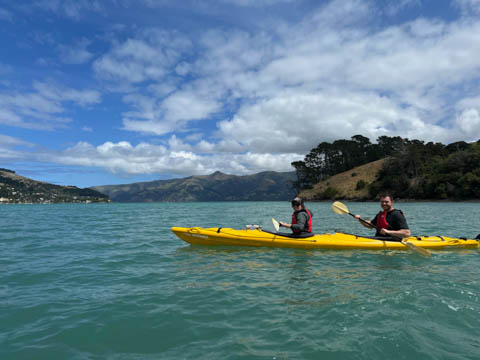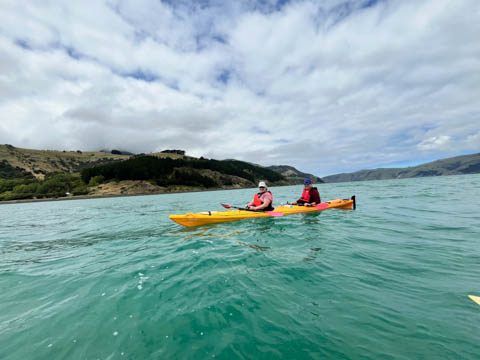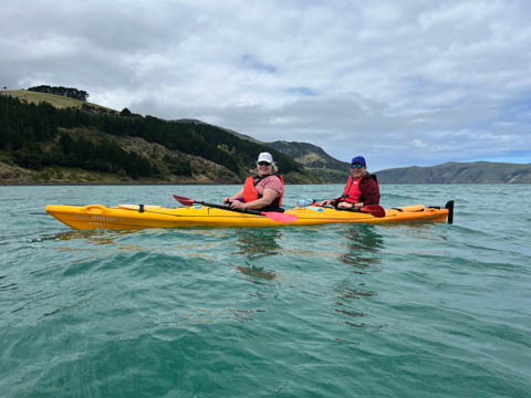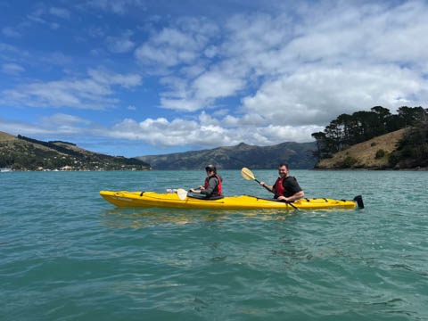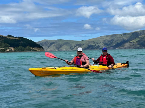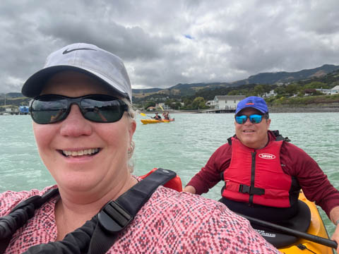 January 2025 (Part 21) New Zealand Trip - Day Twenty and Twenty-One: Christchurch and Akaroa For our last full day, we headed out to Akaroa which is out on the end of the peninsula stretching out from Christchurch. We had reservations to go kayaking in Akaroa Harbor. After a very curvy drive we met our guide Peter. As they had double kayaks, Andy teamed up with Anna, who was also visiting the country. She was Welsh, but now lived in Denmark and worked for Ikea.