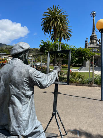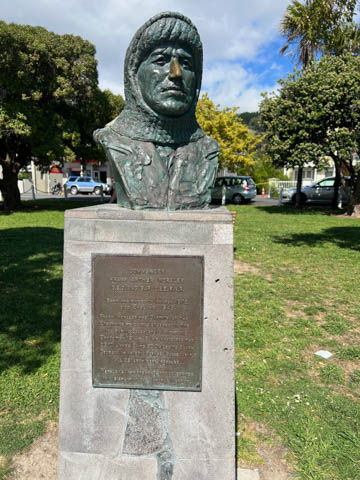 Liked this statue of a painter. Surprised to find a statue of CDR Frank Worsley, the unbelievable navigator who was born and raised in Akaroa in 1872. He "was Captain (and navigator) of the Endurance which was crushed in the ice during Shackleton's Antarctic expedition 1914-16. He navigated the 23 foot James Caird 800 miles to South Georgia (Island) in an epic voyage. Subsequently all 23 crew were rescued." He died in England in 1943.