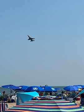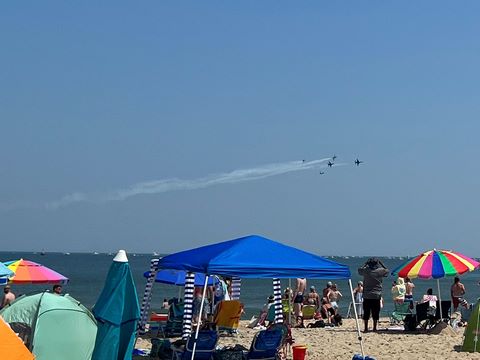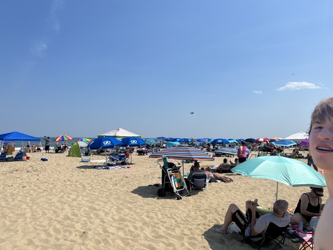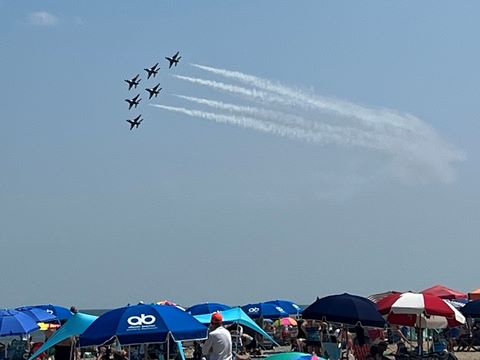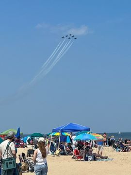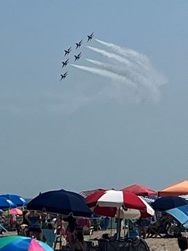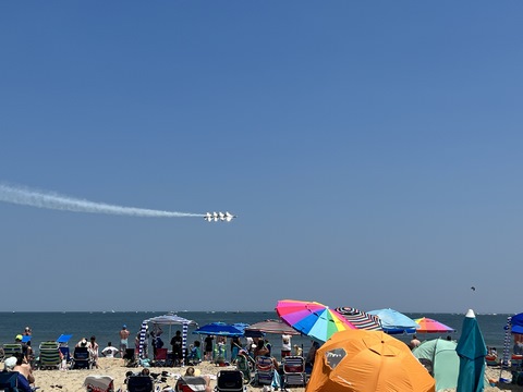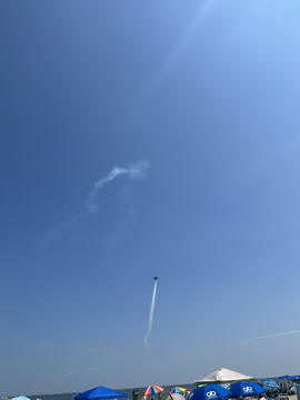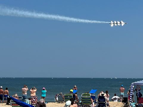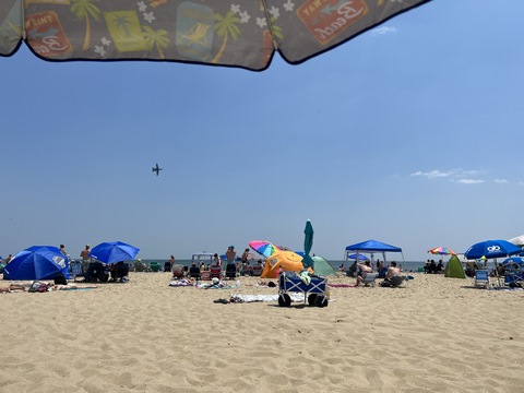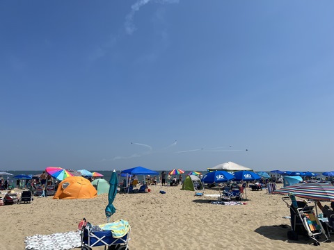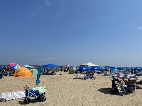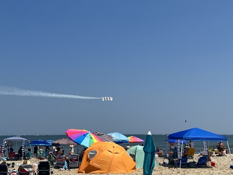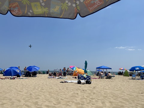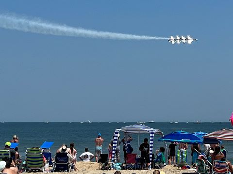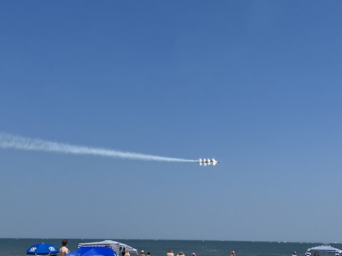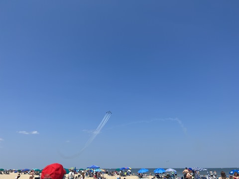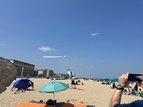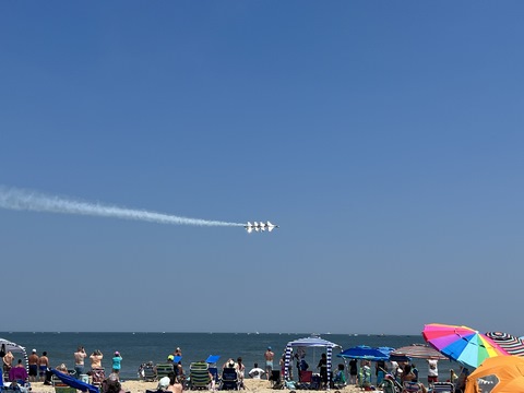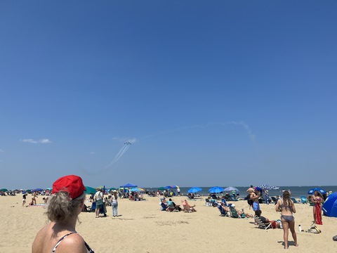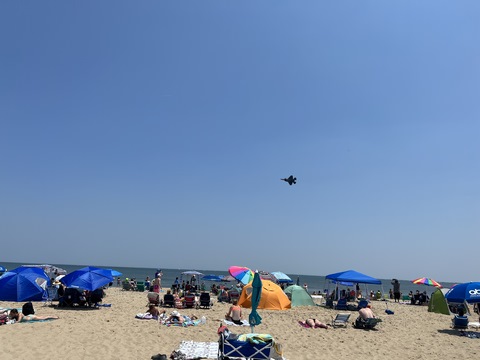 June 2023 (Part 02) Ocean City Air Show We headed to the beach in late June for the Ocean City Air Show, with our friends, the Rades, joining us again. We got there earlier this time than last year, but wound up at a similar spot. Here was the A-10 demonstration. (note, since the aircraft are so small in the field, an impossible to track well if zoomed in, I've provided the original and a cropped image for most pictures below).