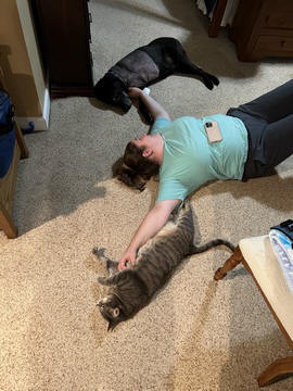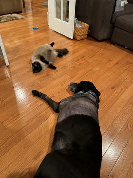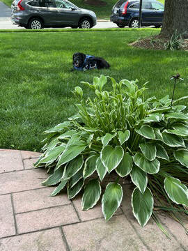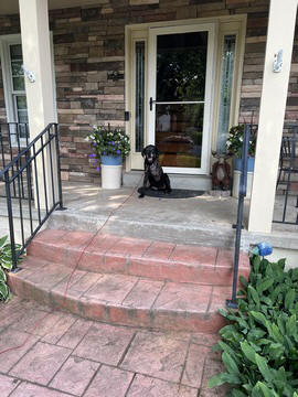 He's been spending a lot of time in the front yard, as it's easier to get down those stairs.