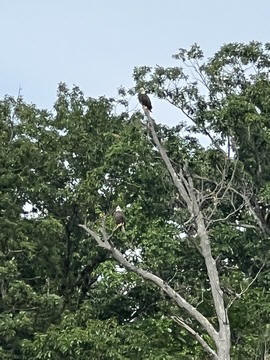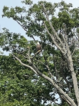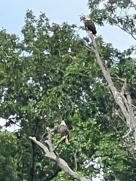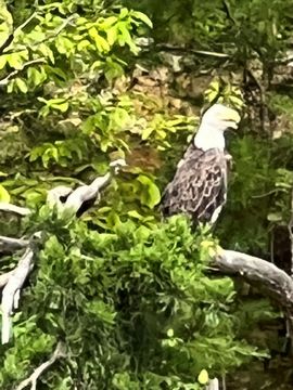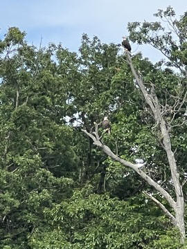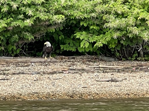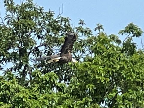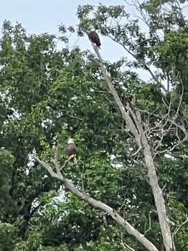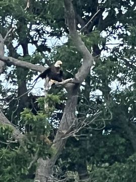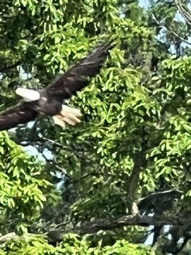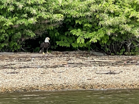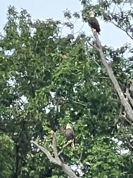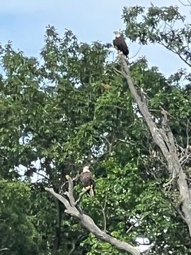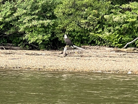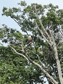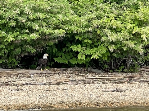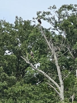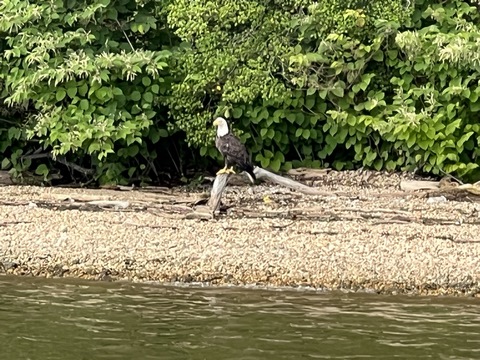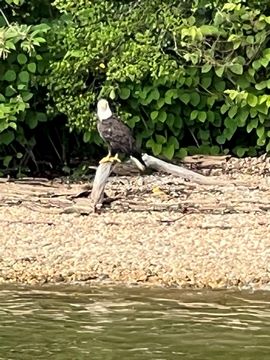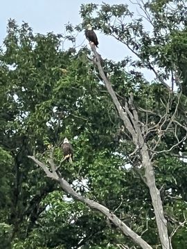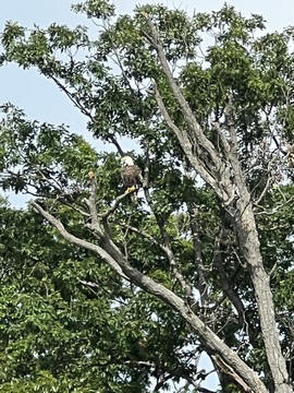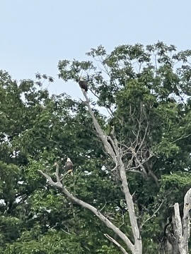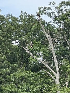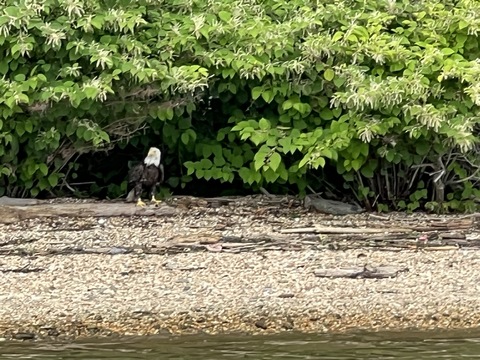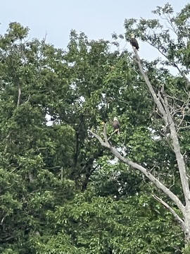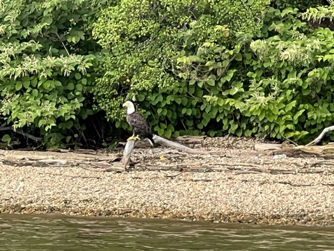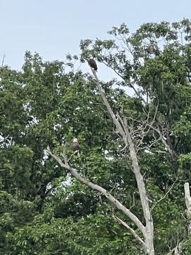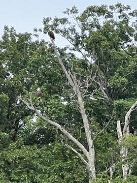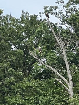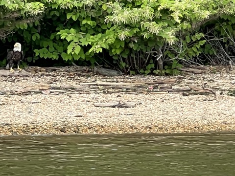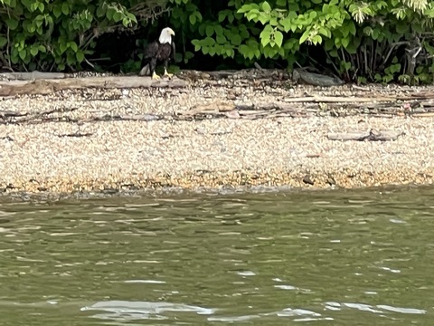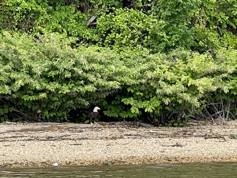 On the way back, we spotted an Eagle just before Mallows Bay, then another, then another. In all, we think we saw four or five adults and two or three juveniles. They were clearly congregating around something on the shore, likely a dead fish. We couldn't get too close without them taking off, but they wouldn't fly too far away either. So wish we'd grabbed the good camera with a long lens, as these were shot with the iPhone.