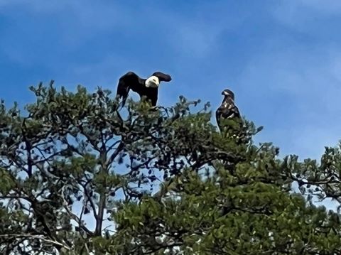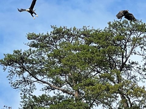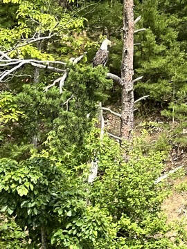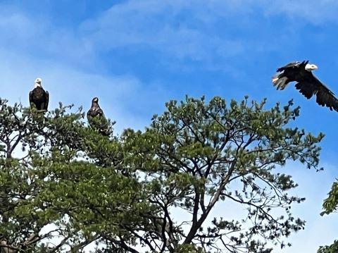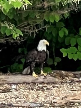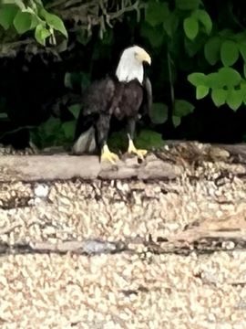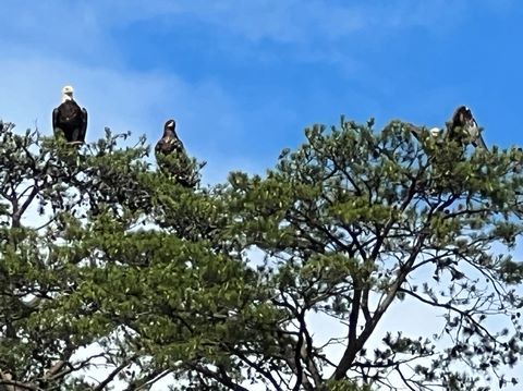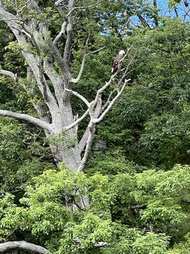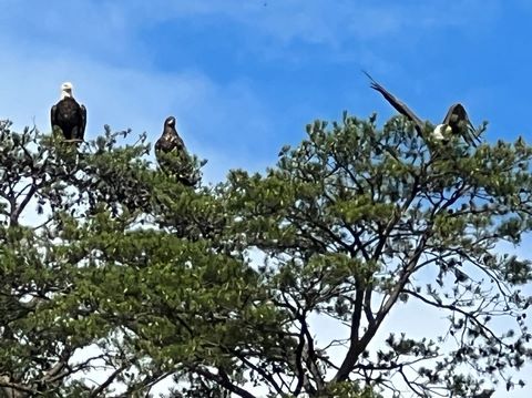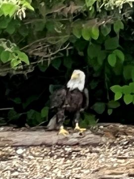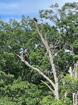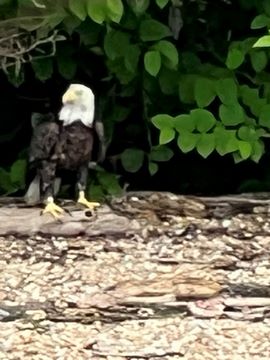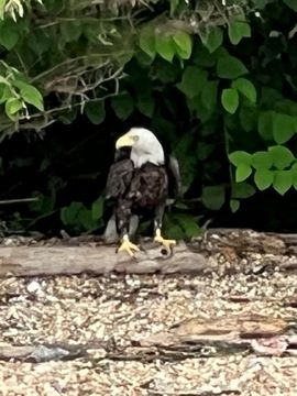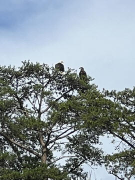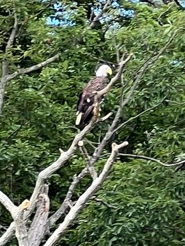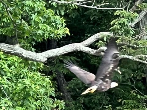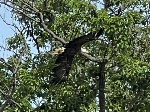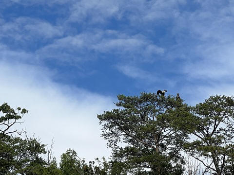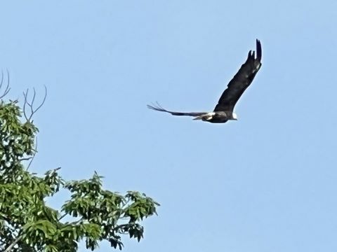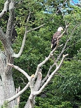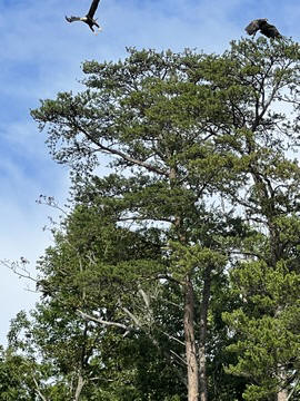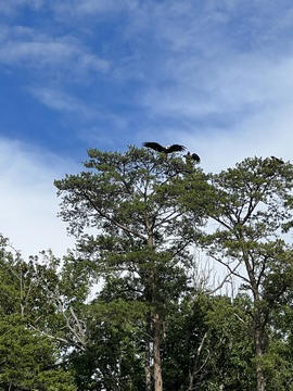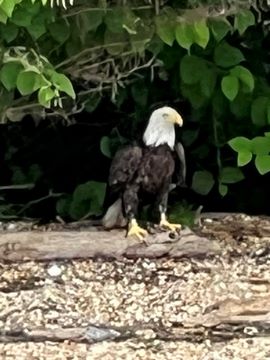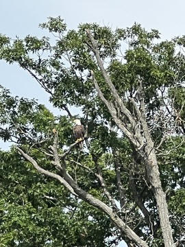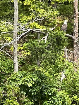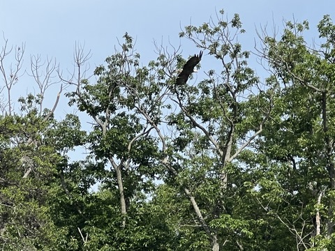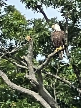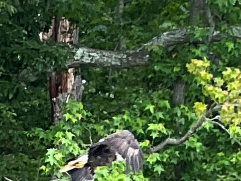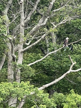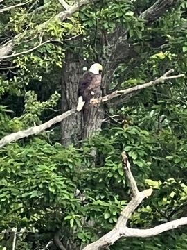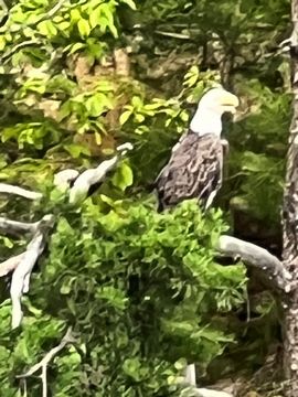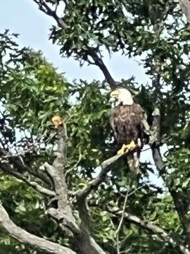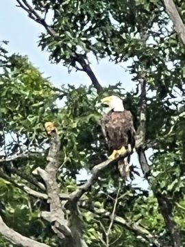 On the way back, we spotted an Eagle just before Mallows Bay, then another, then another. In all, we think we saw four or five adults and two or three juveniles. They were clearly congregating around something on the shore, likely a dead fish. We couldn't get too close without them taking off, but they wouldn't fly too far away either. So wish we'd grabbed the good camera with a long lens, as these were shot with the iPhone.