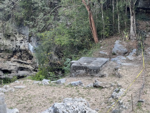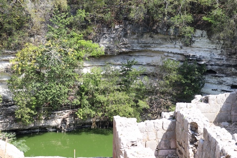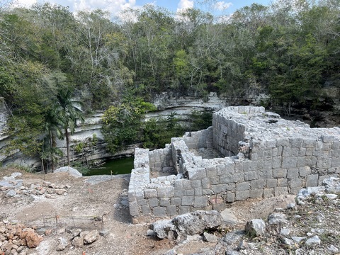 looks out over what is today a steep, dry, cenote. The southern end of the