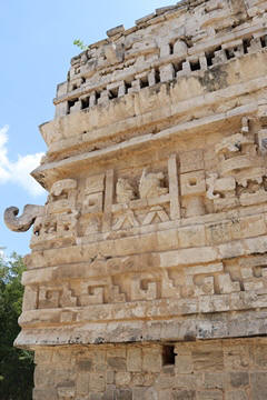 temple has a profusely decorated façade, in the Chenes style. Owing to the