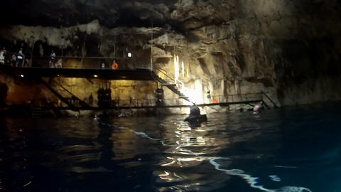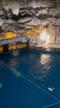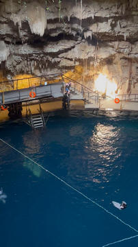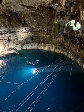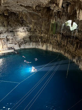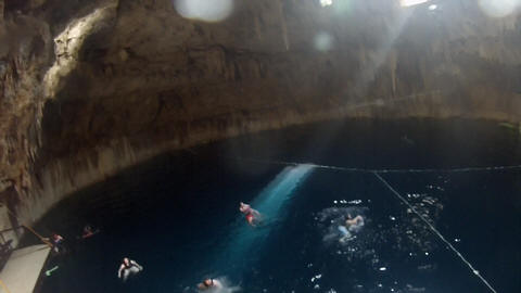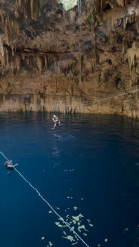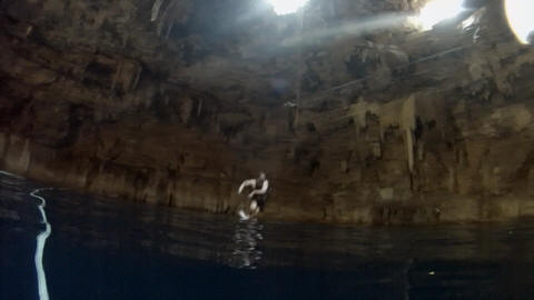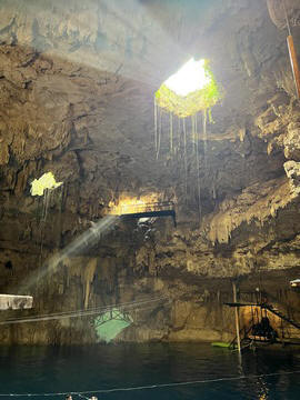 There were three openings in the cenote roof. The first was used as the entrance and the second allowed access to a high platform to see inside and take pictures, while the other provided a great beam of light.