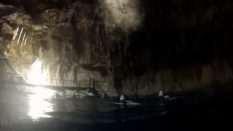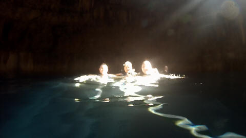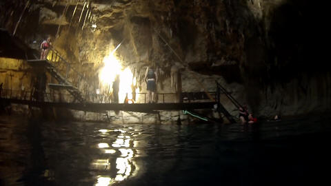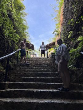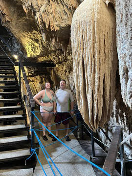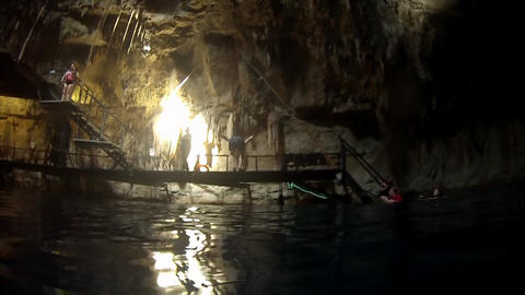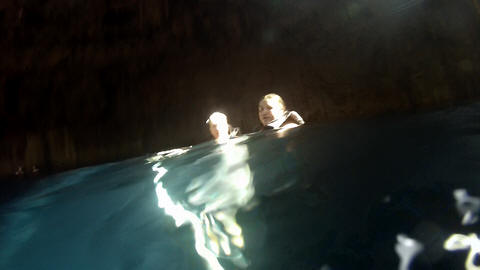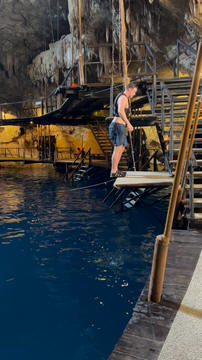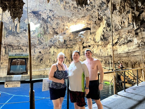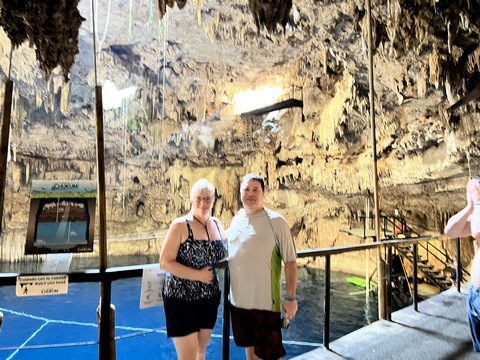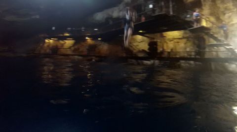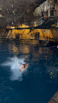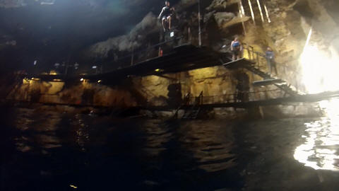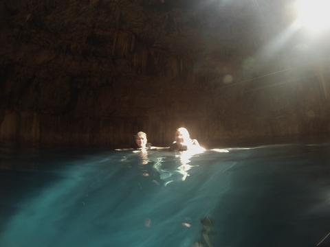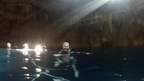 Here is Lexi in the water and Andy making several jumps and flips. He was having a little too much fun. Glad we were on a private tour, as we could simply stay a bit longer and enjoy the cool water and neat setting.
