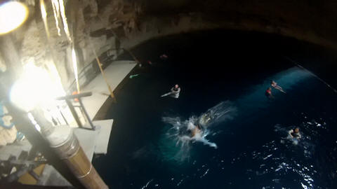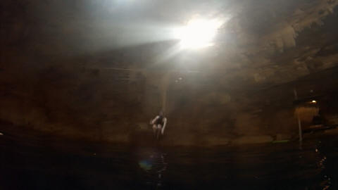 So this is what happens when you give a 22 year-old boy the Go Pro. First he does a flip off a platform. You know he's up to something when the tongue comes out.