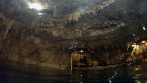 Andy delighted in doing laps to jump off all of the platforms. The water was just above 70 deg year round, providing a nice cool dip ... once you made it in the first time.
