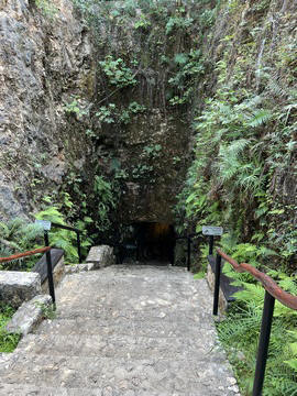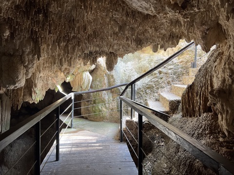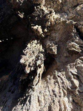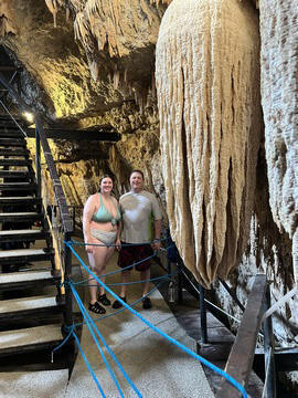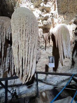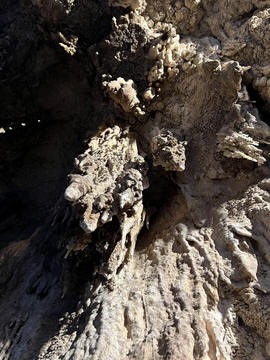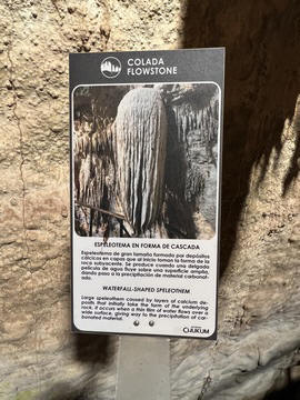 This large feature was labeled as a waterfall-shaped speleothem - a large speleothem caused by layers of calcium deposits that initially take the form of the underlying rock. It occurs when a thin film of water flows over a wide surface, giving way to to the precipitation of the carbonated material.