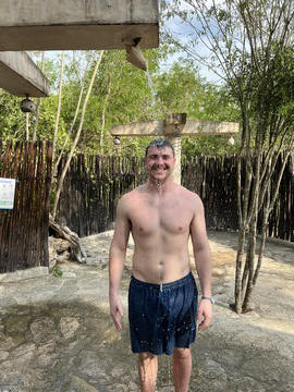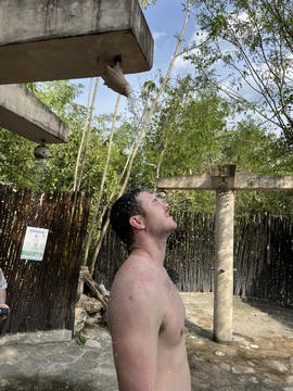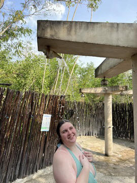 Afterward, we rinsed off in outdoor showers which used a conch shell to direct the water.