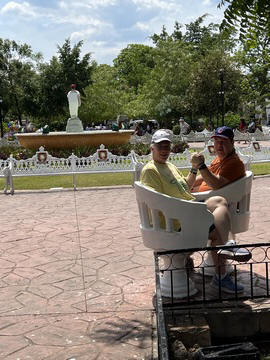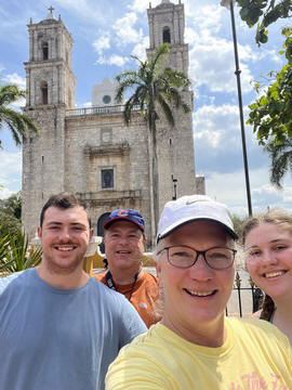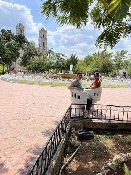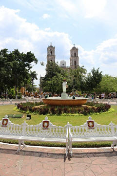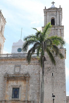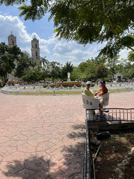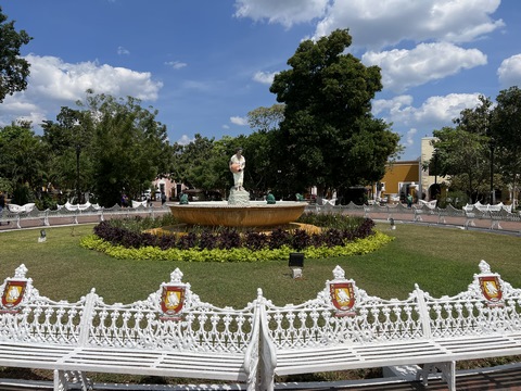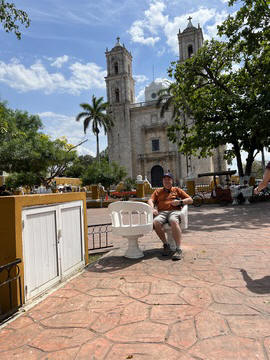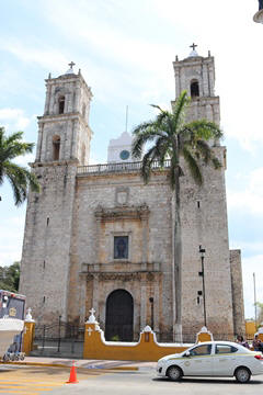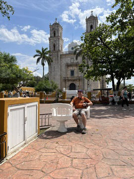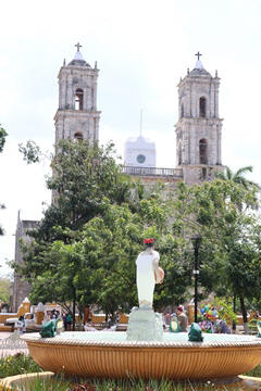 March 2023 (Part 03) Spring Break in Cancun, Mexico: Day 3: Valladolid and Cenote Chukum After our tour of Chichén Itzá, we started heading back east, stopping in the town of Valladolid, whose central square dates back to the colonial era. Valladolid was founded by Don Francisco de Montejo "The Nephew" by the Chouac-Ha Lagoon (Long Water) on May 28, 1543. It was moved from its original settlement location as the weather was humid and unhealthy leading to many settlers to fall ill. They decided to move the site to the Mayan city of Zaci, whose name means White Sparrow Hawk and whose symbol is represented in the town's shield. They destroyed and ripped down teh Maya town and erected a city on top along a classic colonial plan. During much of its history, it was isolated and relatively autonomous, which allowed substantial exploitation of the Maya who were barred from entering parts of the city. Consequently, during their revolt in the Caste Wars in 1847, the city became one of the first points of attack and was under siege for two months before the army finally overcame the occupation. The town is now Yucatan's third largest city. South to the central square is the Templo de San Servacio. This imposing Catholic church with 2 bell towers was founded in 1545 & rebuilt in the 1700s. According to Primo, the congregation was punished for continued idol worship by the Maya and the main entrance was forcible relocated to the north side.
