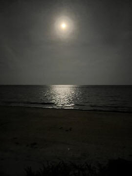 We enjoyed a great dinner and then walked along the shore. The full moon was spectacular, as everyone except Andy took pictures of it.