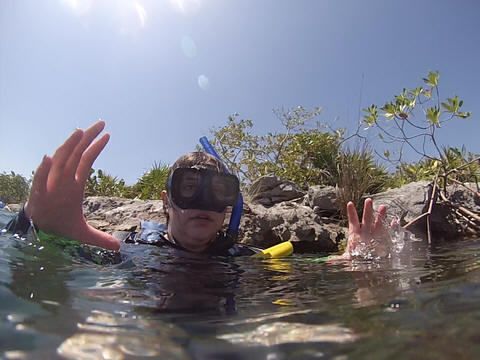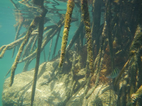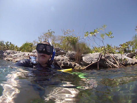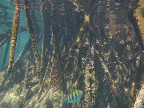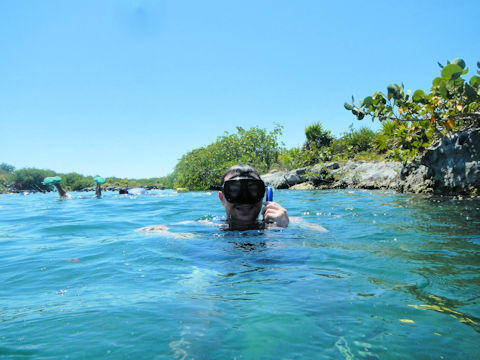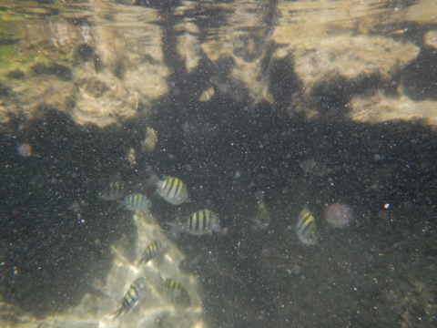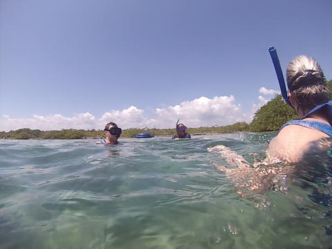 March 2023 (Part 07) Spring Break in Cancun, Mexico: Day 5: Snorkeling in the Yalku Inlet and Beach Spot From the cenote, we next went snorkeling at a the Yalku Inlet. This was a nice, calm inlet fed by both fresh and sea water, so had an abundance of sea life. It also had a large number of mangroves, helping to hold the soil in place while providing a habitat for fish. Unfortunately, it is rather developed nearby and was rather crowded, which meant it was harder to see sea life. So, glad we had been snorkeling to the reef yesterday.