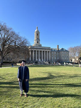 March 2023 (Part 10) Kids At Penn State We asked the kids to take a couple pictures of Andy, now that he has his cap and gown, to use for invitations to a celebration party that weekend.