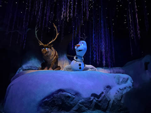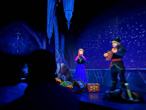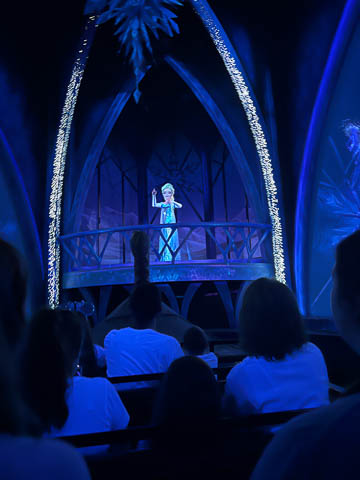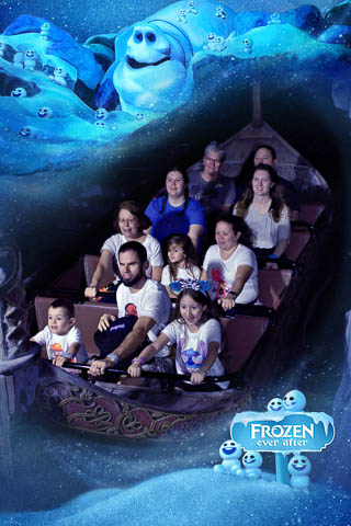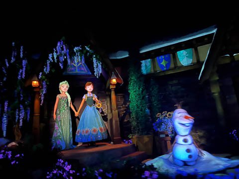 As we got their early for Magic Hours, we headed to Norway and the Frozen Ever After ride, which already had a 30 minute wait. We're still not sure if we like the projection of the faces and expressions on the inside, it makes them bright, but it's a but creepy and causes a big disconnect in skin tone between the face and neck.
