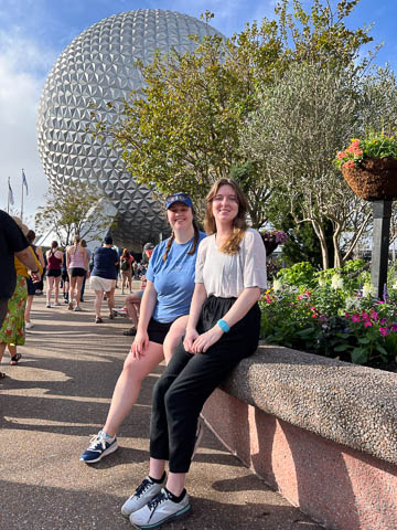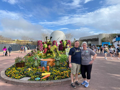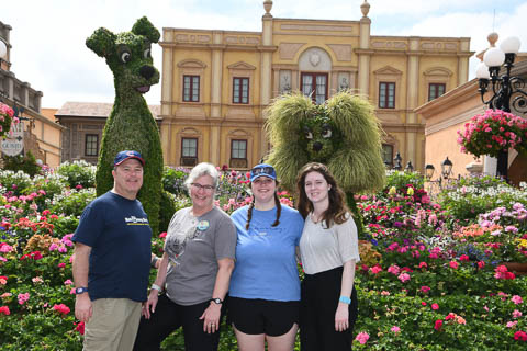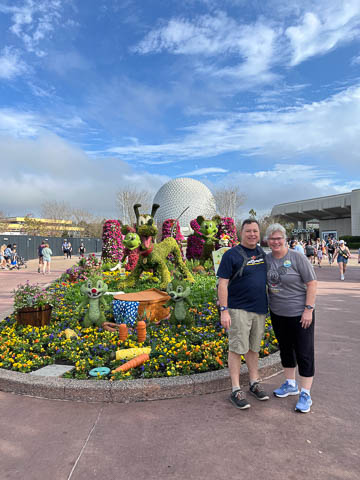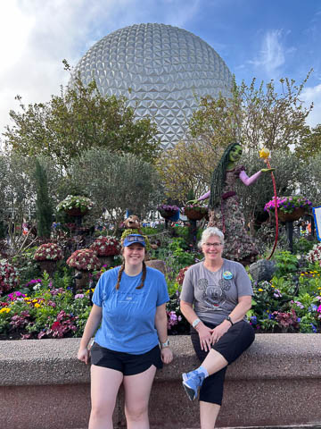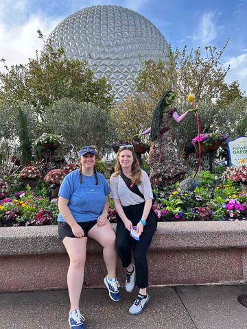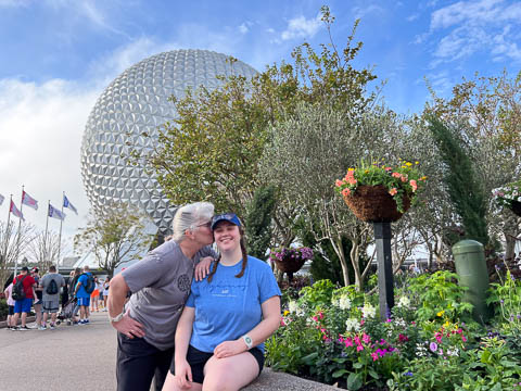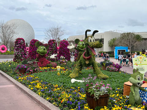 March 2024 (Part 02) Walt Disney World Vacation Day 3-4: EPCOT On the next day, Monday, we headed to EPCOT which was celebrating the International Flower & Garden Festival. While Steve waited in line to have his backpack searched, the girls took some pictures.